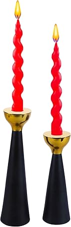 Black & Gold Set of 2 Candle Stick Candle Holders - Gold Taper Candle Holders - Decorative Candlestick Holder for Homes, Hotels, Dinning, Fits 3/4 inch Thick Candles