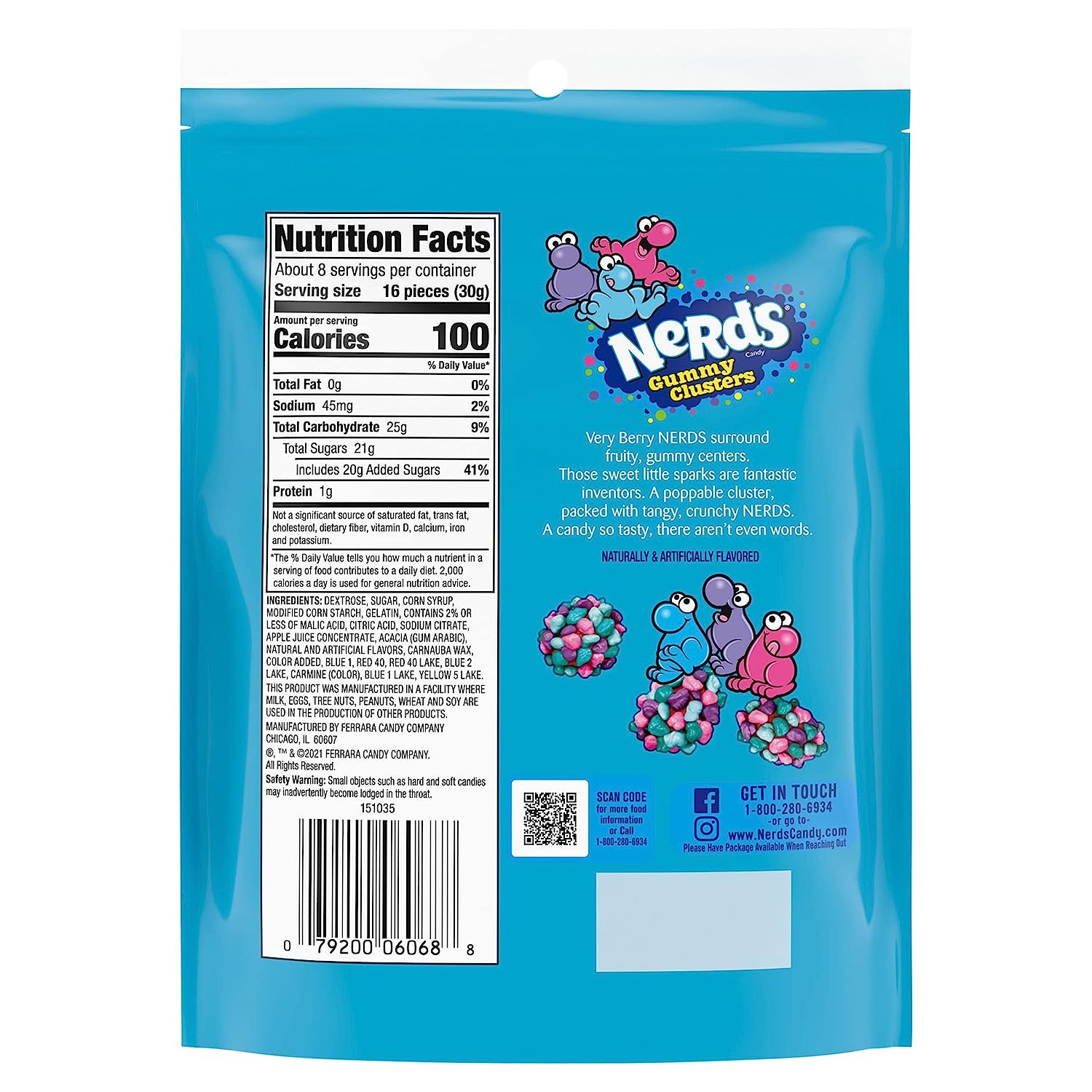 • A NERDSTASTIC EXPERIENCE: Classic NERDS candies heaped on a delicious red gummy center to make tasty bite-sized clusters too good for words! Each NERDS gummy cluster is a crunchy, chewy, sweet explosion of strawberry, grape, orange, and lemonade flavors