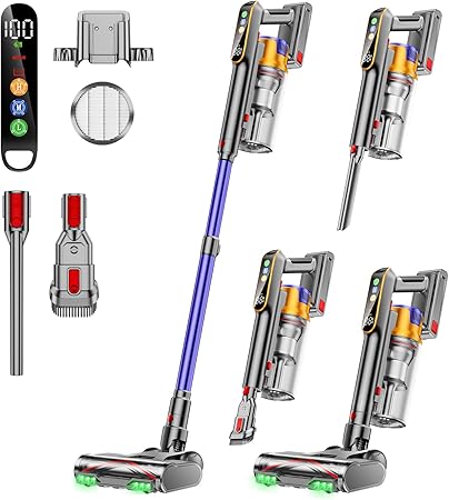Cordless Vacuum Cleaner, 550W 45KPA 60 Mins, Stick Vacuum with Wall Mount Charging, Anti-tangle Wireless Vacuum, Rechargeable for Pet Hair/Carpet/Hard Floor