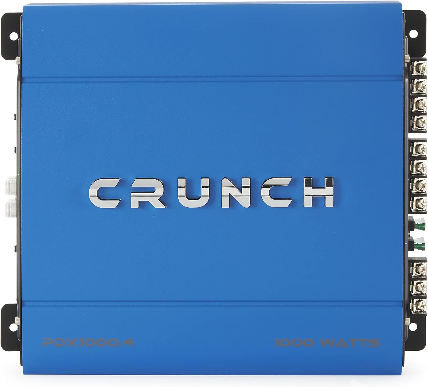 Get more performance out of your entire car audio system by choosing the right amp, the Crunch 1000 Watt 4 Channel PowerDriveX Series Class AB Car Amplifier. This exclusive model comes in stunning blue. Unparalleled in quality, the Crunch 1000 Watt 4 Channel PowerDriveX Series is a low noise pre amplifier with low level RCA inputs and outputs. It features flexible installation, allowing the amp to run in 4 channel or bridged mono mode. With rugged MOSFET pulse width modulation power supply, fully adjustable crossovers, and bass boost, this amplifier will always deliver the quality you need. Take your car audio to the next level with the Crunch 1000 Watt 4 Channel PowerDriveX Series Class AB Car Amplifier.