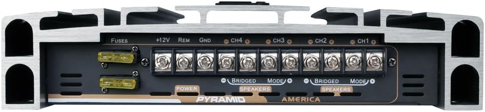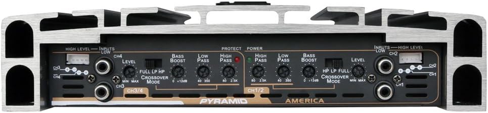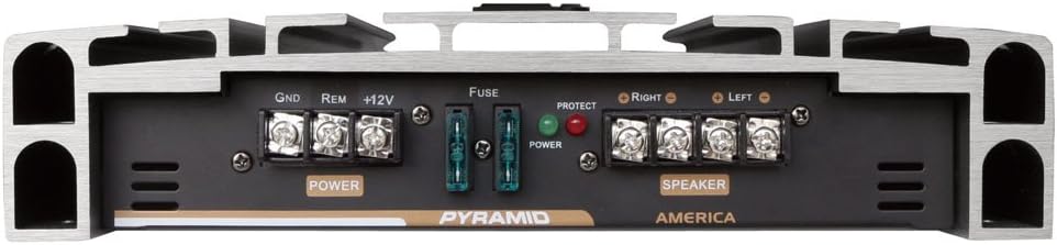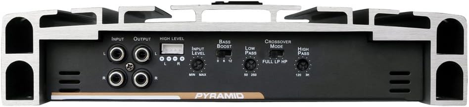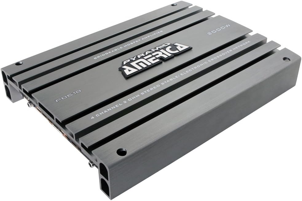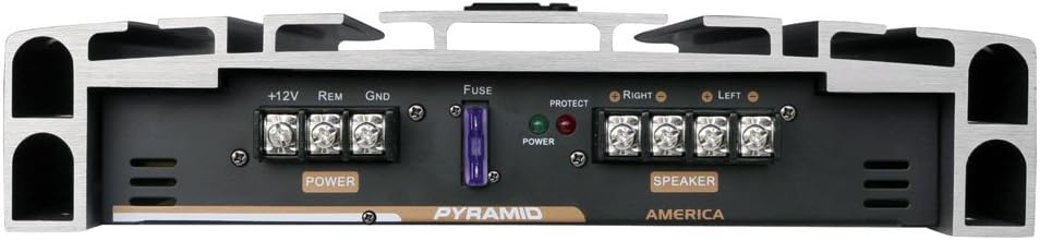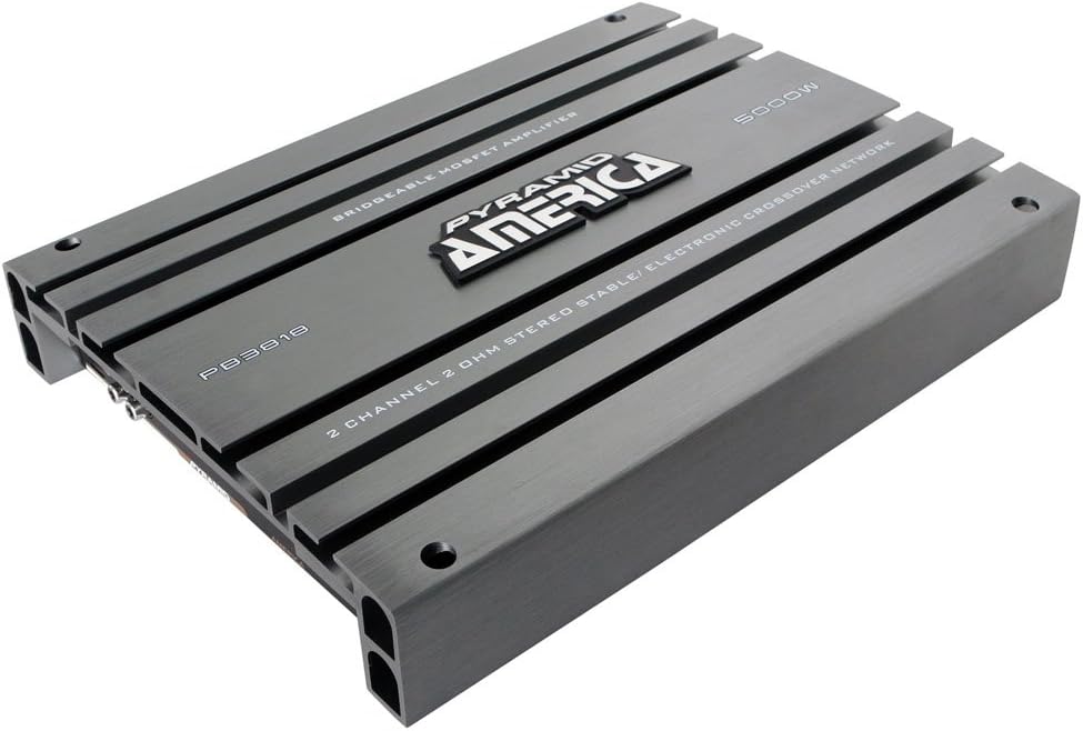 The Pyramid PB918 2 channel car amplifier features a MAX power handling of 1000 watts at 2 channels or bridged into 1 channel at 2000 watts. Other features include a Fully Adjustable Electronic Crossovers, Variable Gain Control, Heavy Duty Aluminum Alloy Heat sink, High Level Molex Input, 2 Ohm stereo stable, remote turn on, variable bass bost,MOSFET PWM power supply, power and protection LED's and high impedance input.