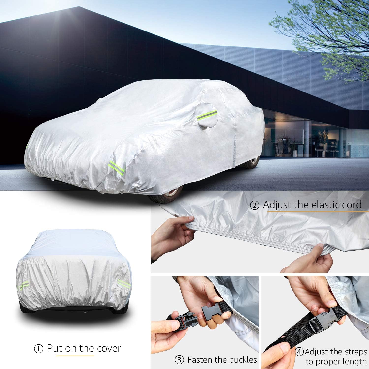• NOTE: only a cover that is longer than your sedan fit your sedan, please note the size before purchasing. This cover is not suitable for vans, SUVs, hatchbacks, and sports cars with long engine hoods.