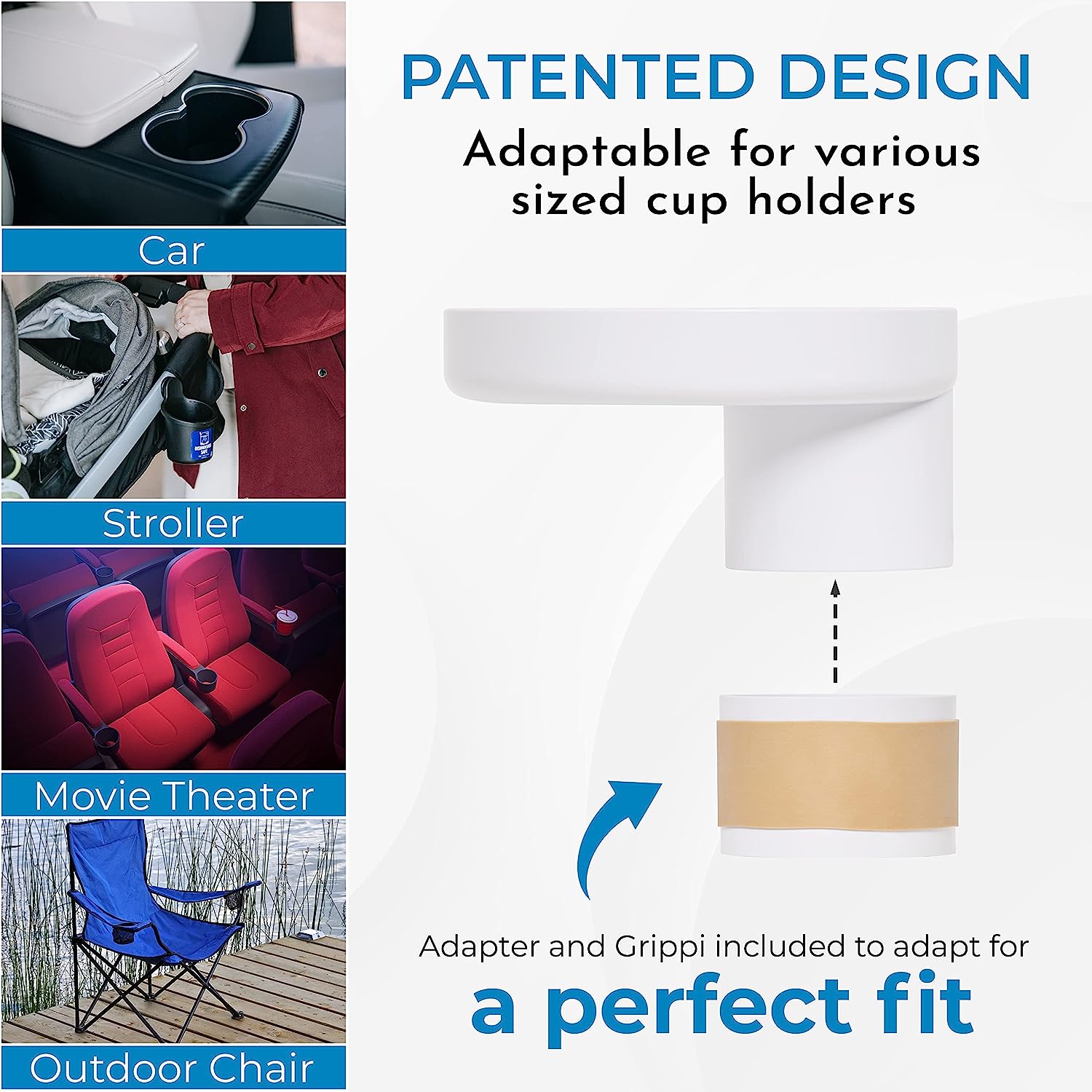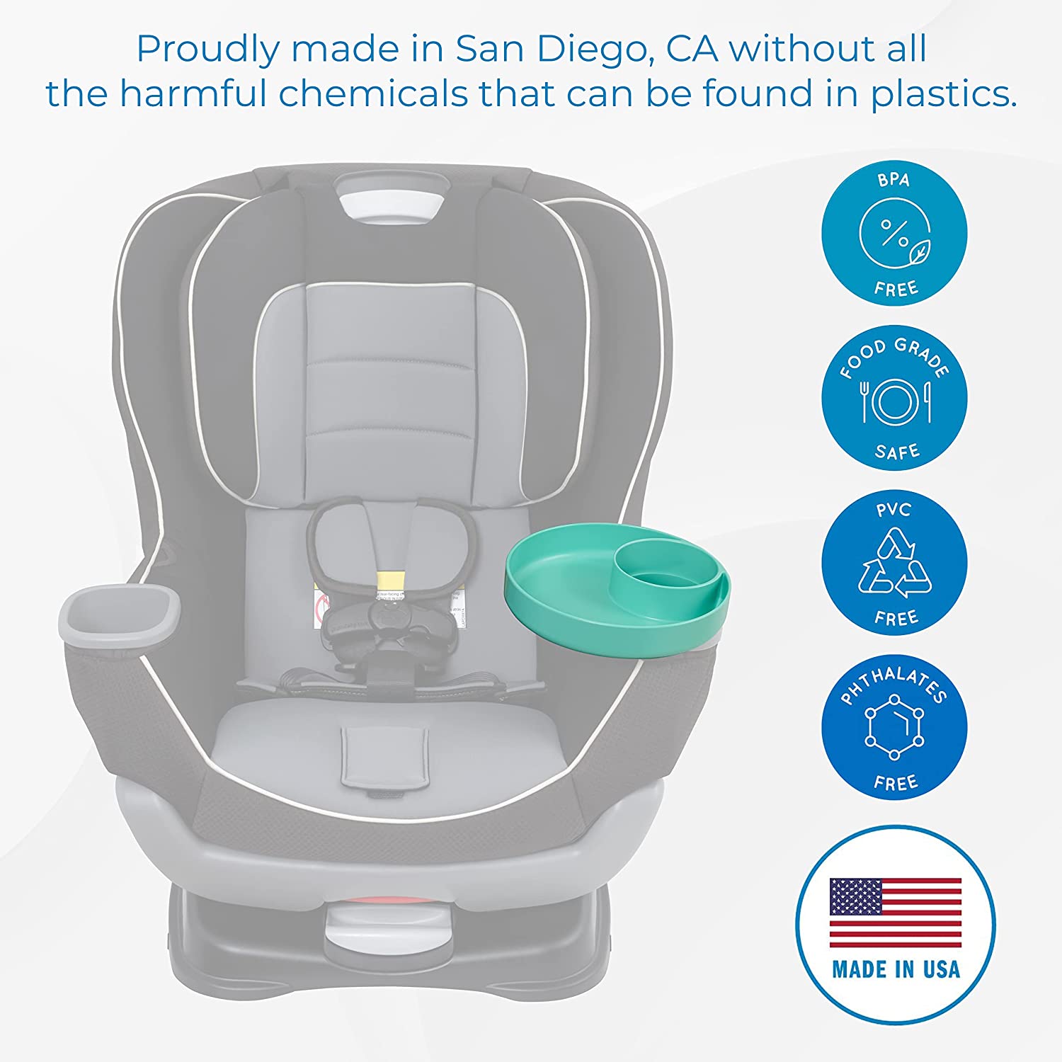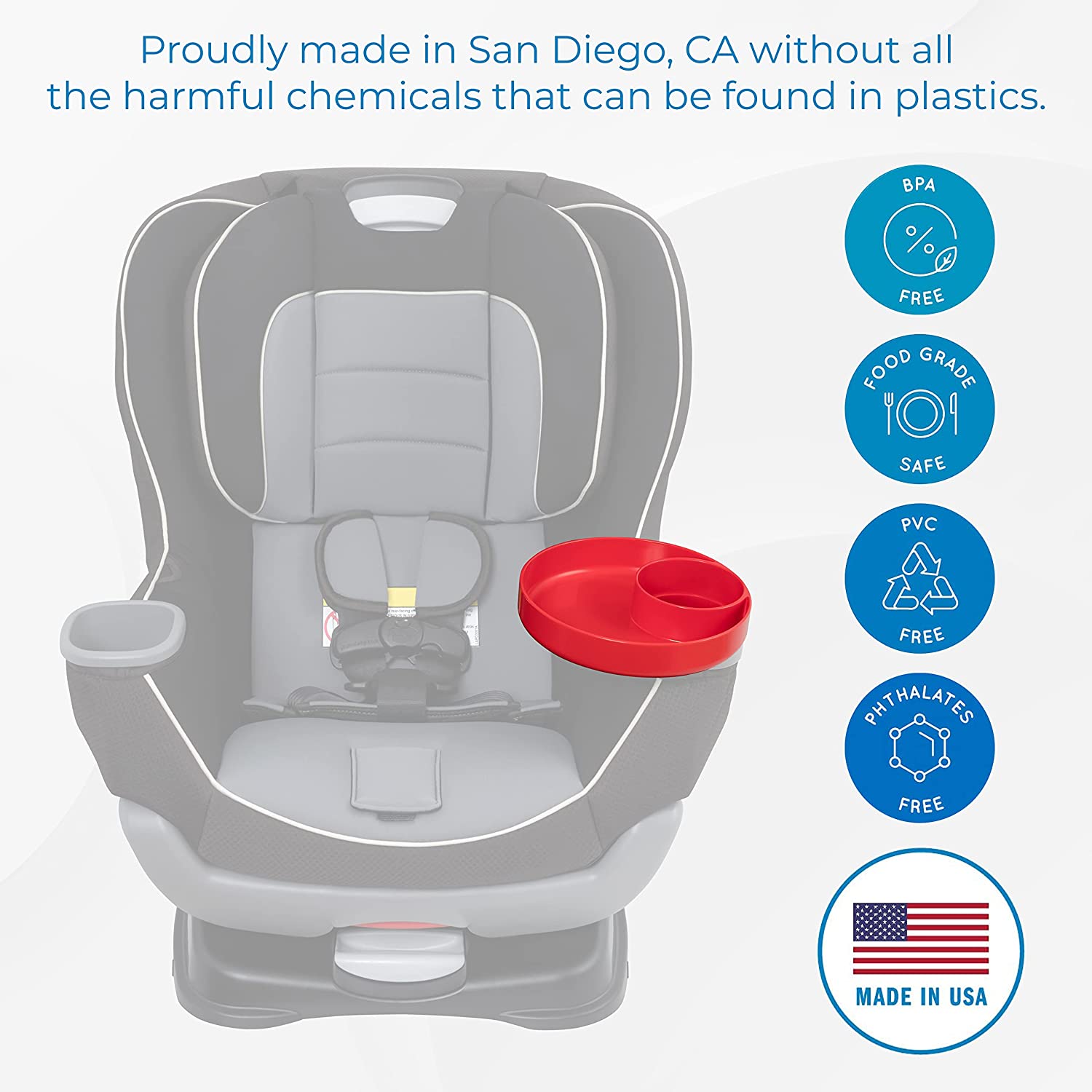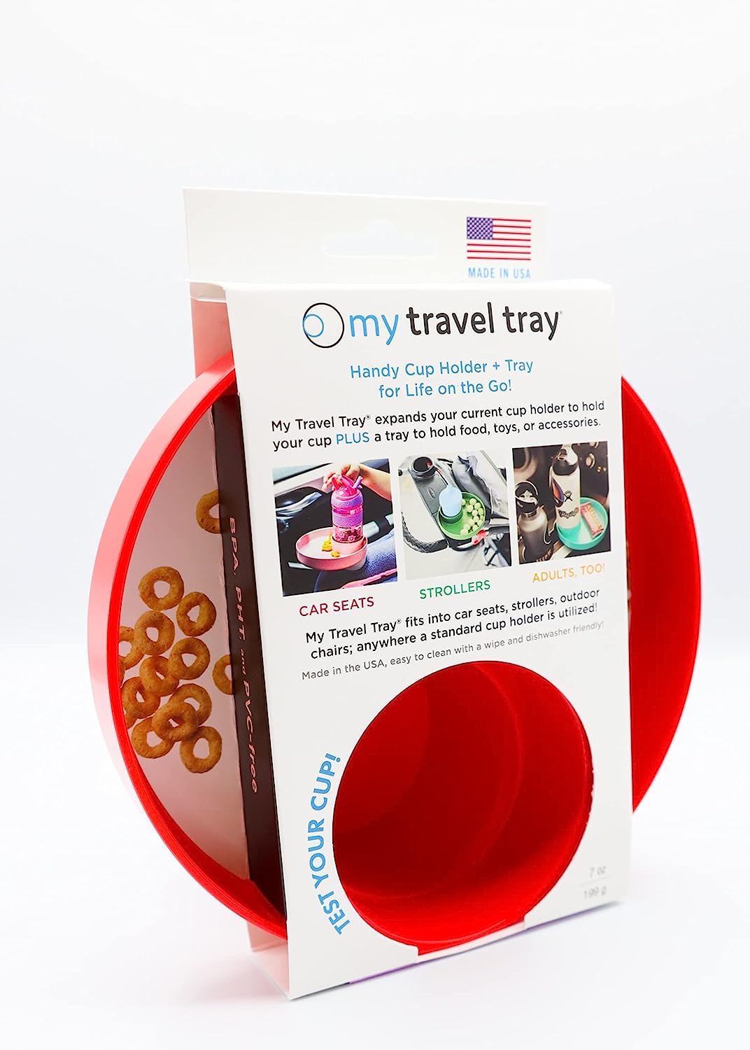 My Travel Tray utilizes your current cupholder, keeping your drinks and snacks within arms reach while out and about, helping keep everyone a little bit happier. My Travel Tray fits most cars, car seats, strollers, beach chairs, shopping carts, anywhere you can locate a cup holder! Whether you are zigging or zagging your way through life, keep your things secure! 100% Made in USA