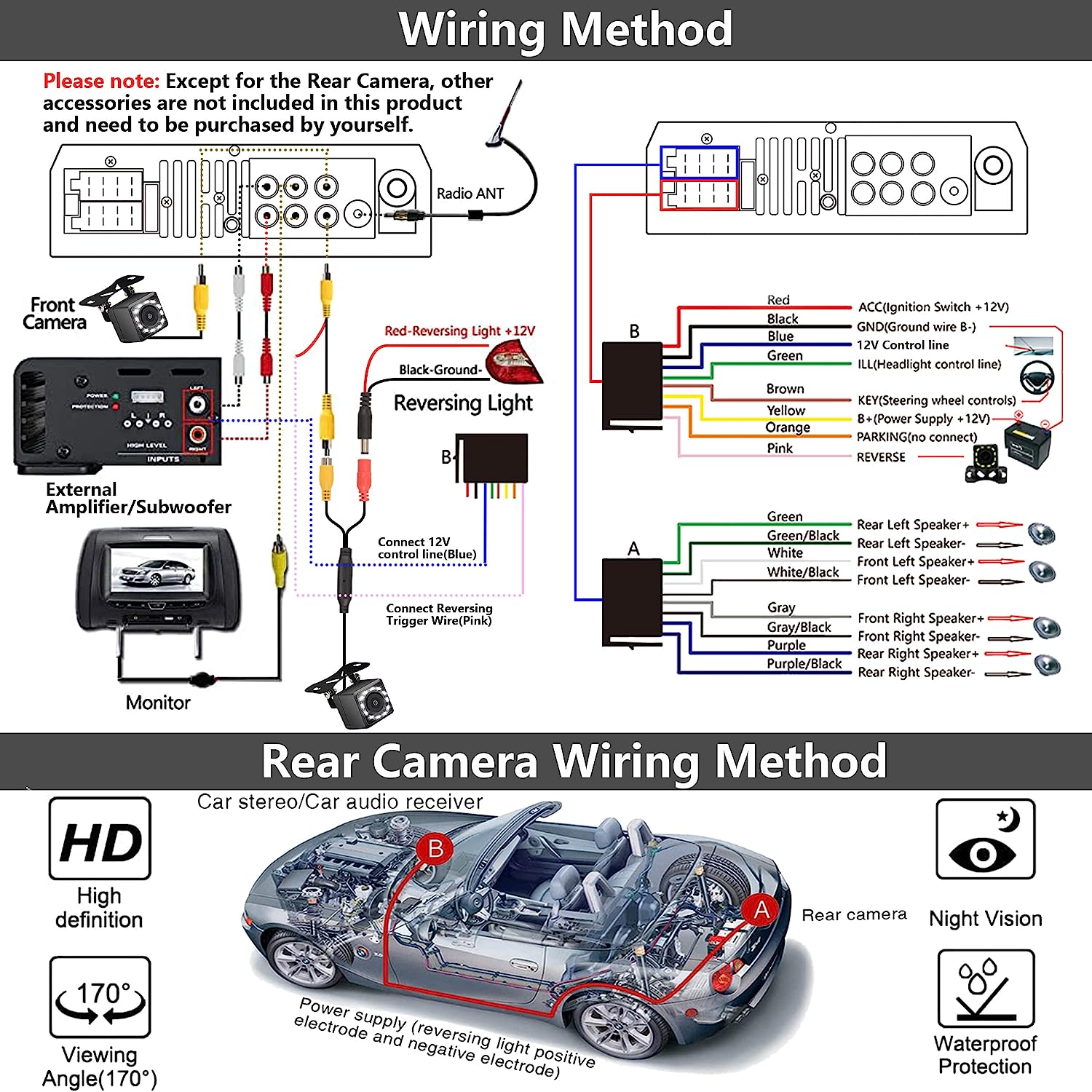 • 【Standard Double Din Stereo with Backup Camera】- Parking has never been easier with this premium double din car stereo which supports front and rear camera, for a safer and time-efficient experience! Simply shift into reverse and the system powers on the camera automatically, for optimal visibility no matter the weather conditions! If you encounter any operation or other problems, please contact us (click "Contact Seller" on your order page)