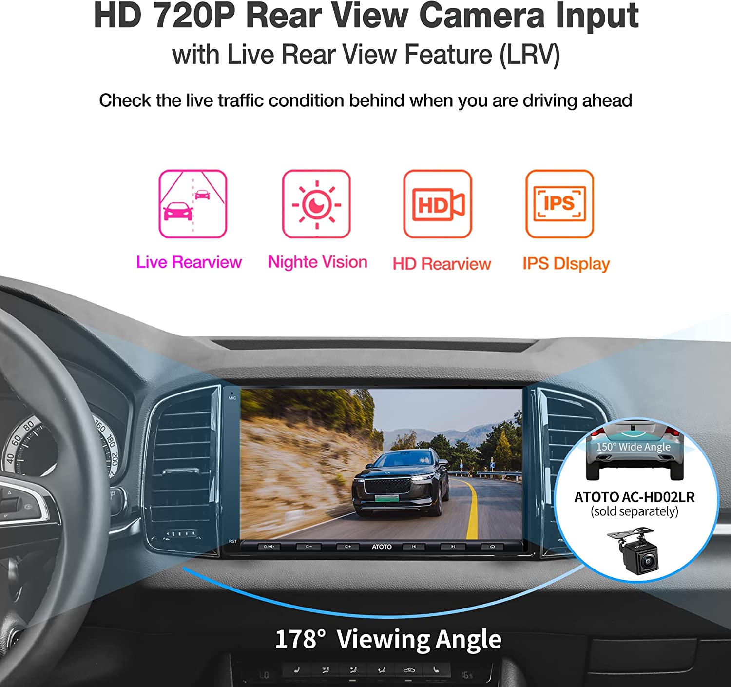 • 【Live Rear-View & Customer Support】LRV offers a real-time rear-view even when driving forward (ATOTO AC-HD02LR camera required), free from the obstructions behind you inside the vehicle. A6 PF can process 720P HD rear-view camera input (other car stereos can only connect to cameras of 480-600 lines). ATOTO's professional customer support team is there for you to solve any problems concerning the installation, operation, etc. of your ATOTO products. Get continued system updates when available.