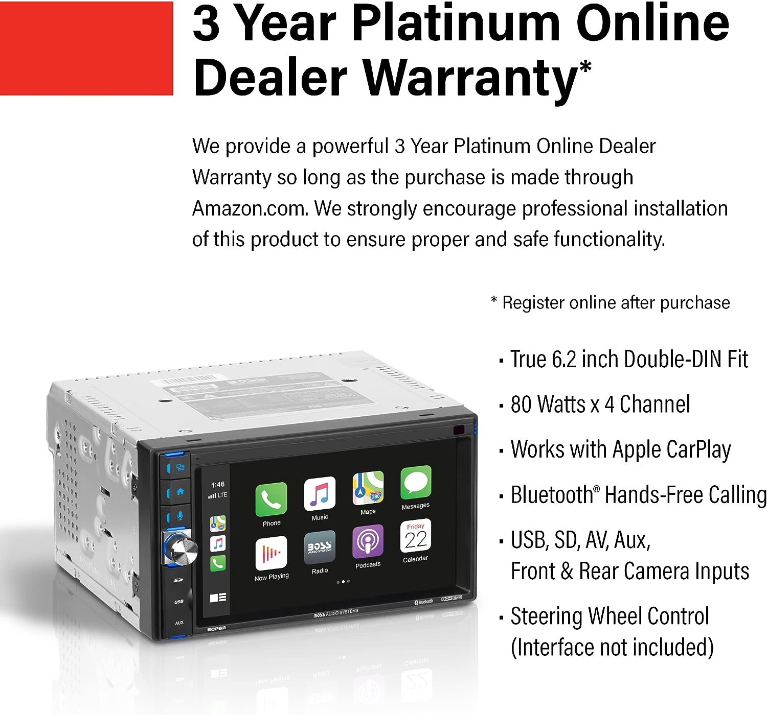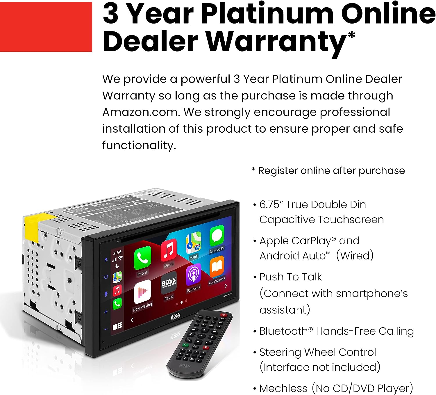 BOSS Audio Systems BVCP9700A-C Car Stereo System - Apple CarPlay, Android Auto, 7 Inch Double Din, Touchscreen, Bluetooth Audio and Calling Head Unit, Radio Receiver, No CD Player, Backup Camera