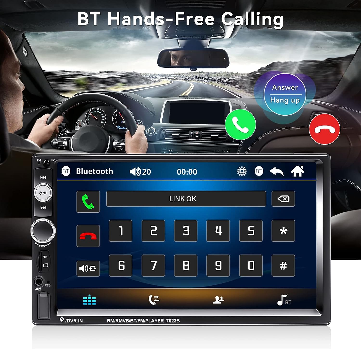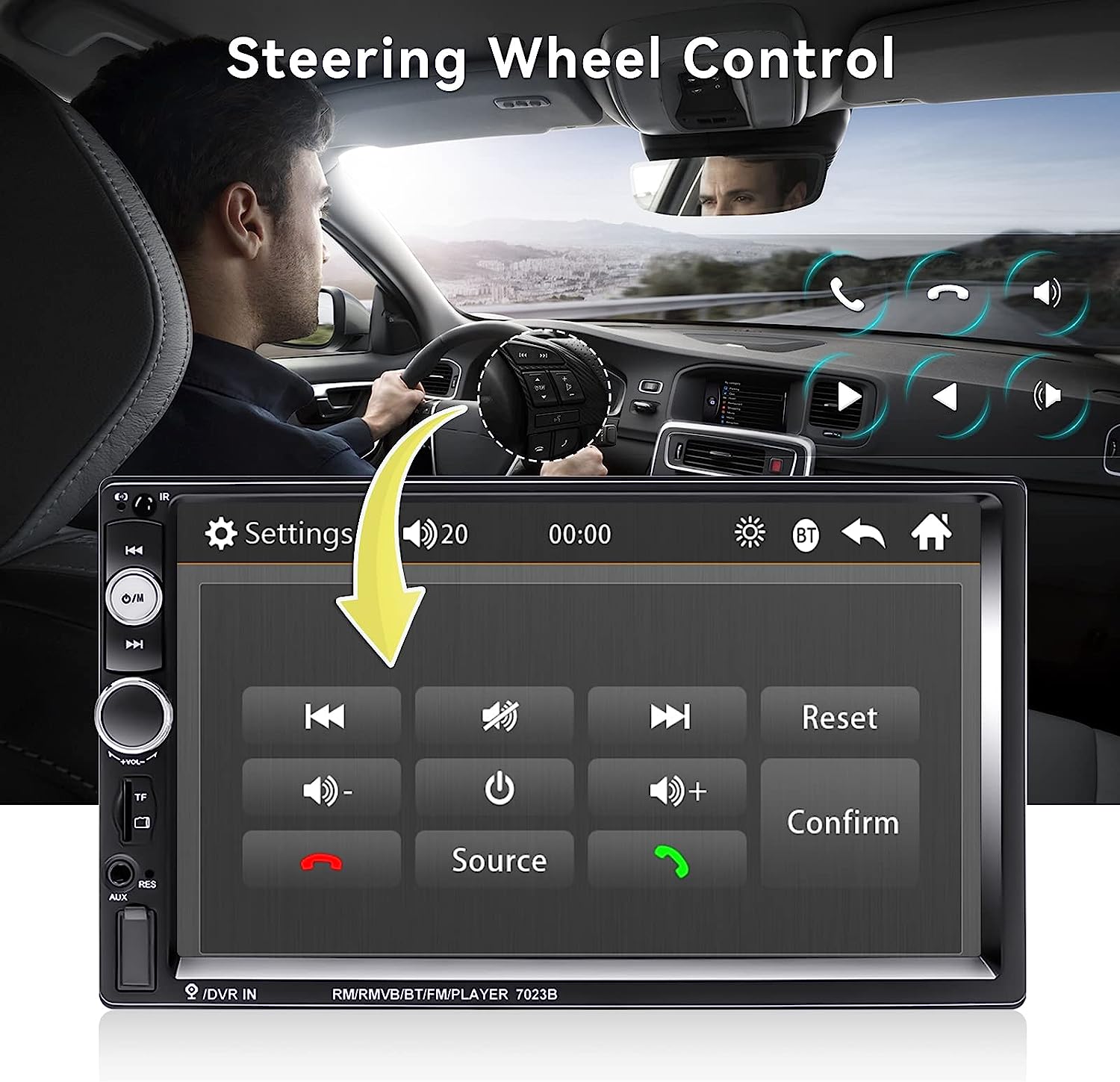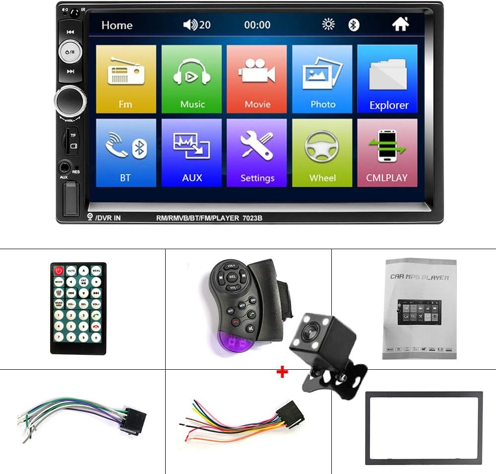 CAMECHO 7" Double Din Car Stereo Audio Bluetooth MP5 Player USB FM Multimedia Radio+ 4 LED Mini Backup Camera with Steering Wheel Remote Support Mobile Phone Synchronization (Used in Android/iOS)