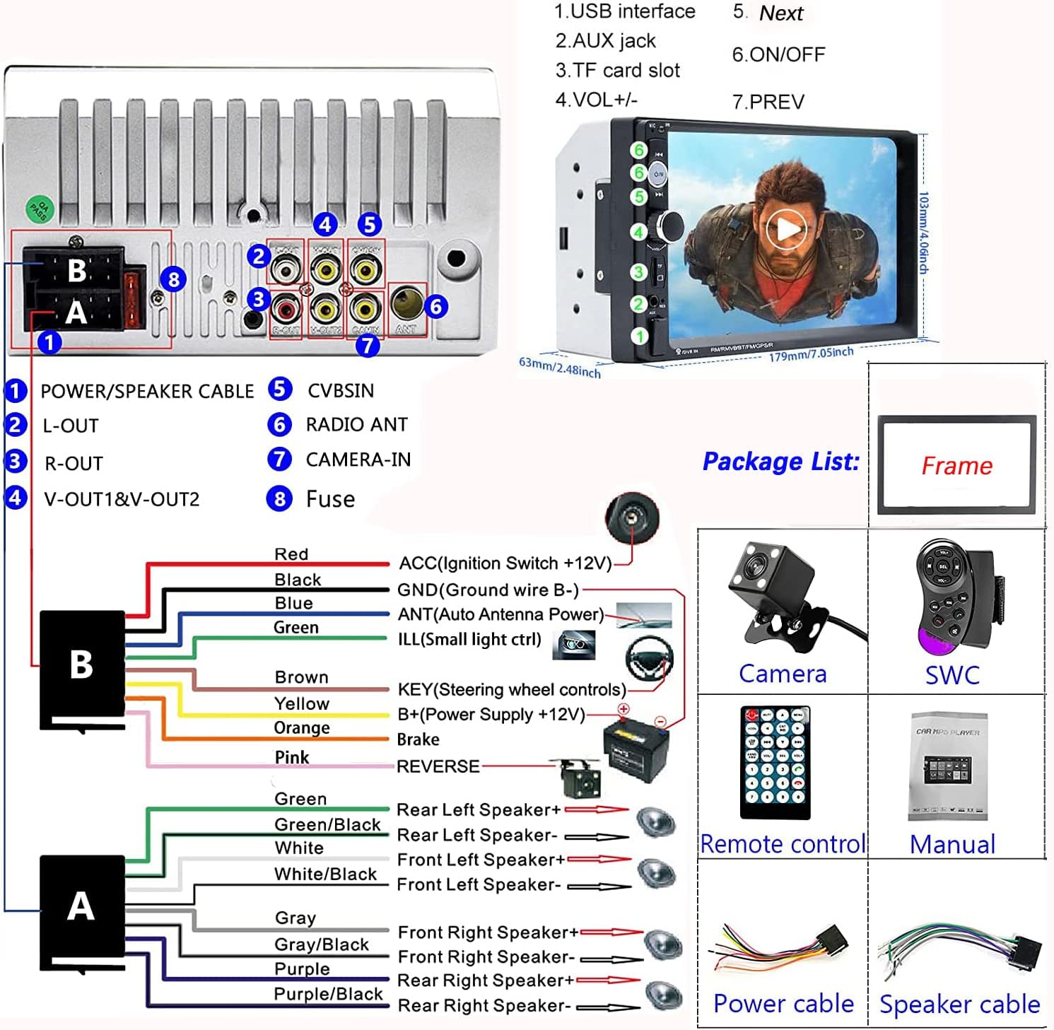 • ✽【Multifunction 】Camecho 7 inch 2 din HD 1080P car radio MP5 player Supports BT and hands-free calling, FM Radio, USB, TF Card (up to 32 GB), AUX IN, music player, video player, steering wheel control and back-up camera