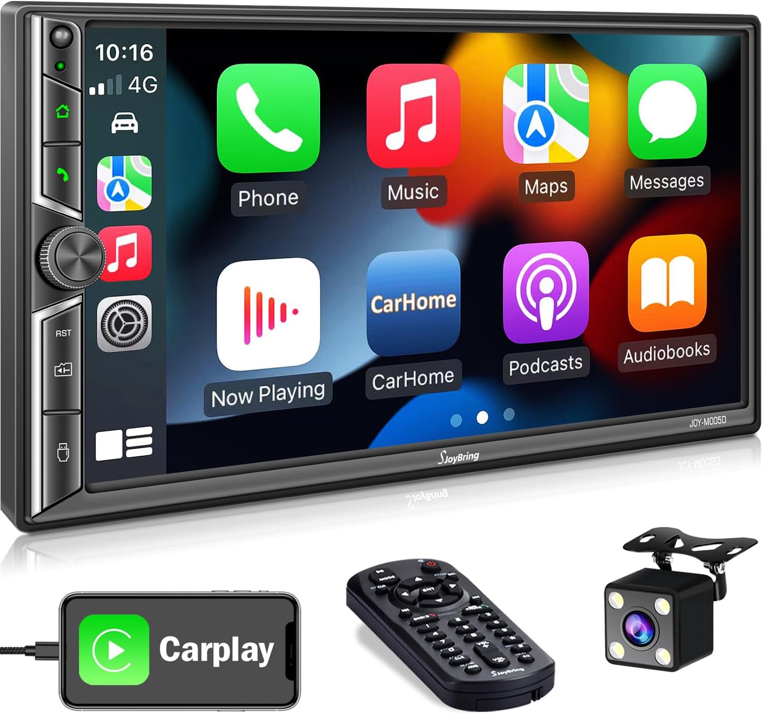 Double Din Car Radio with Bluetooth, Voice Control Apple CarPlay Screen, Mirror Link, 7 Inch HD Capacitive Touchscreen Car Play, Backup Camera, Subw, USB/SD Port, Multimedia Player AM/FM Car Stereo