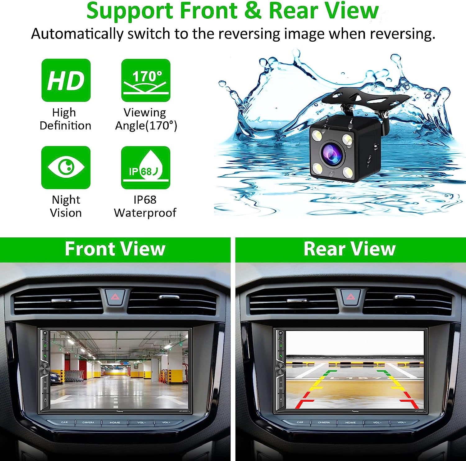 • 🚘【Free Reversing Camera】The car radio supports the rear and front view and will display the image automatically when the vehicle shifts into reverse. HD night vision rear view camera is included, ultra-wide viewing angle of 170 ° and a fully waterproof design, helps to park more safely and easily.