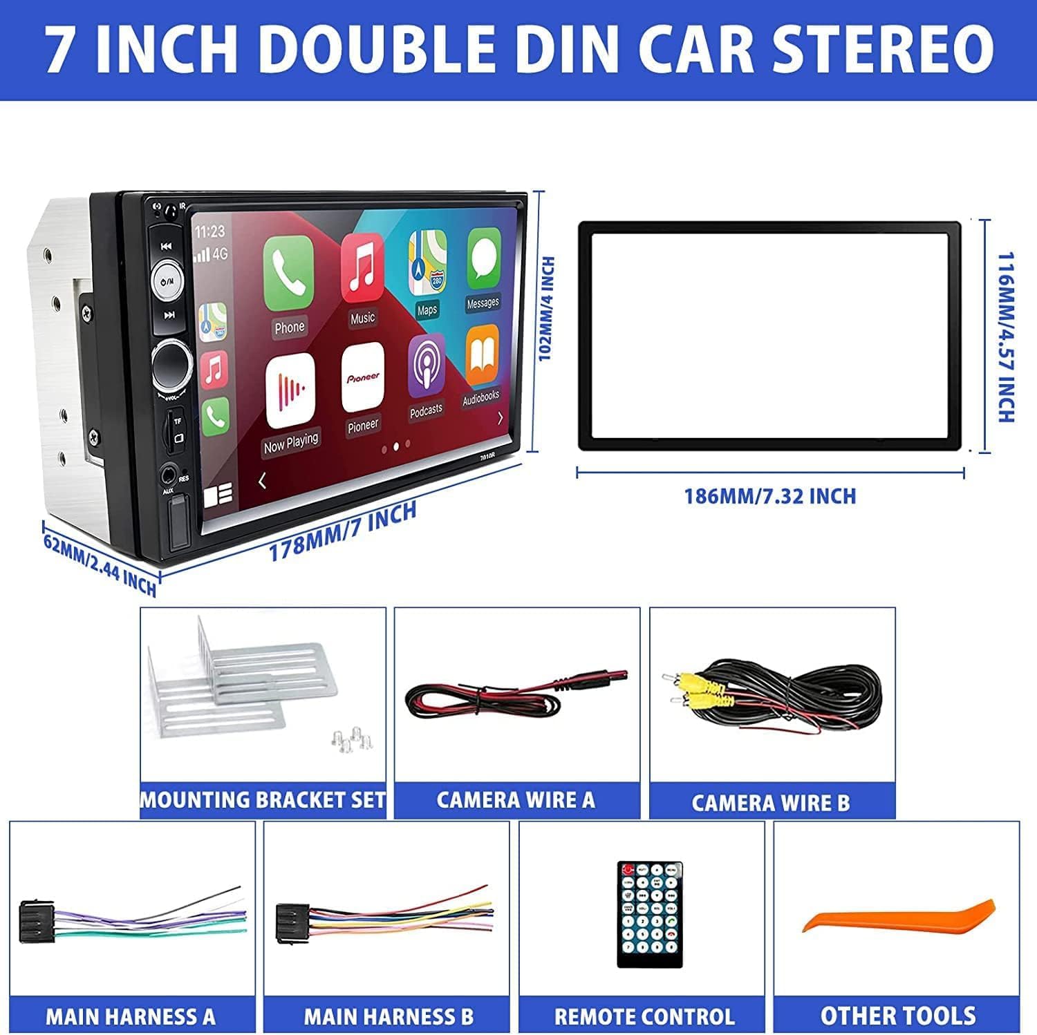 Double Din Car Stereo, 7 Inch Car Stereo with Bluetooth Compatible with Apple Carplay and Android Auto, Car Audio Receivers with HD Touchscreen,FM Car Radio, USB/TF/AUX Port