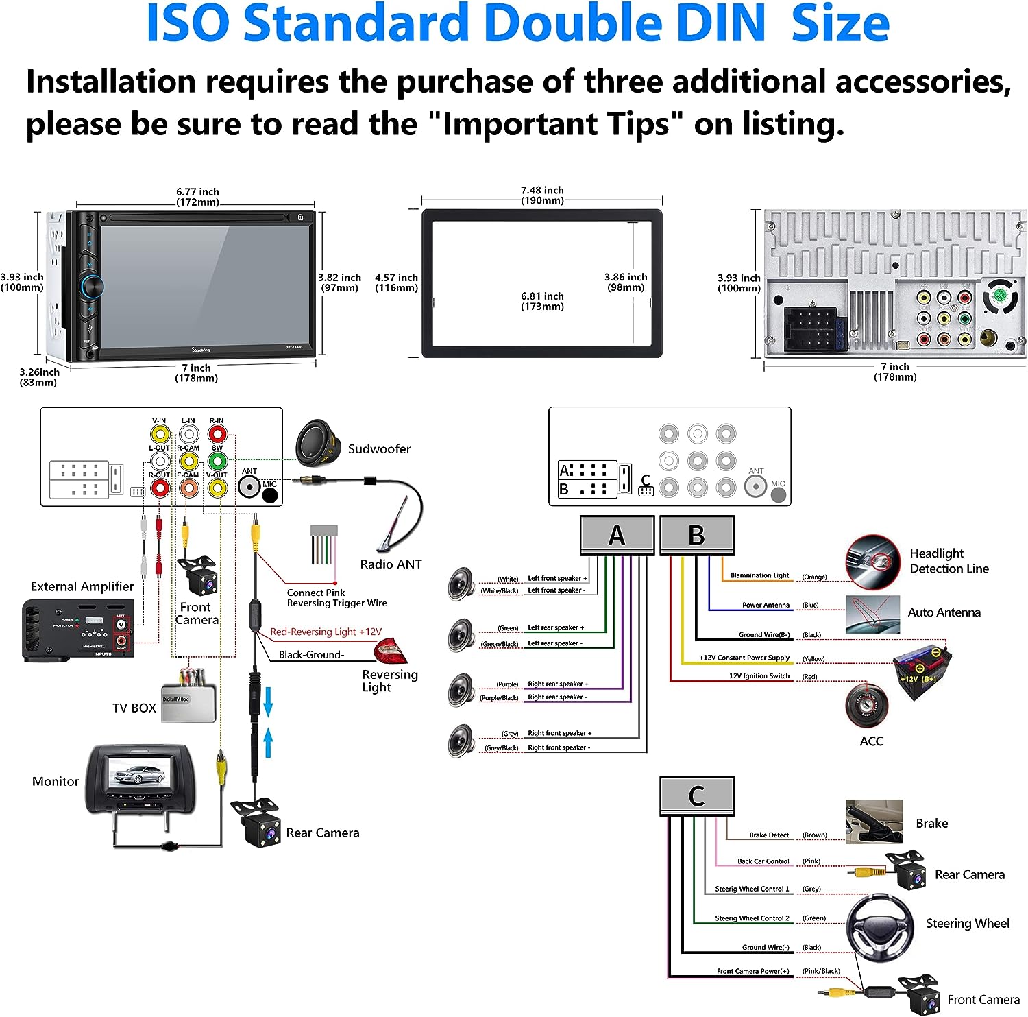 • Rear & Front View Camera - Parking has never been easier with this premium double din car stereo which supports front and rear camera, comes with a built-in rear view camera supporting HD night-vision images for a safer and time-efficient experience! Simply shift into reverse and the system powers on the camera automatically, for optimal visibility no matter the weather conditions!