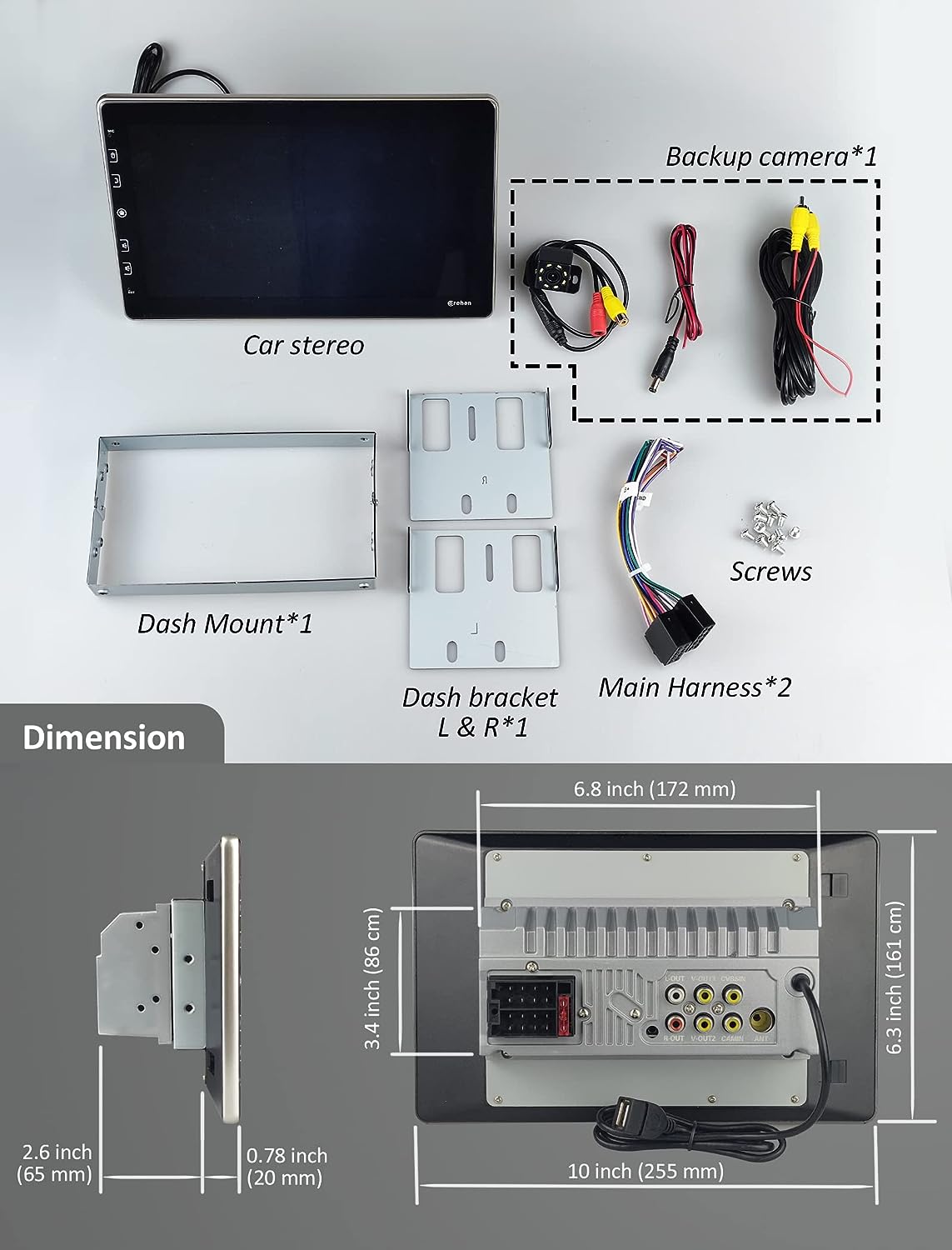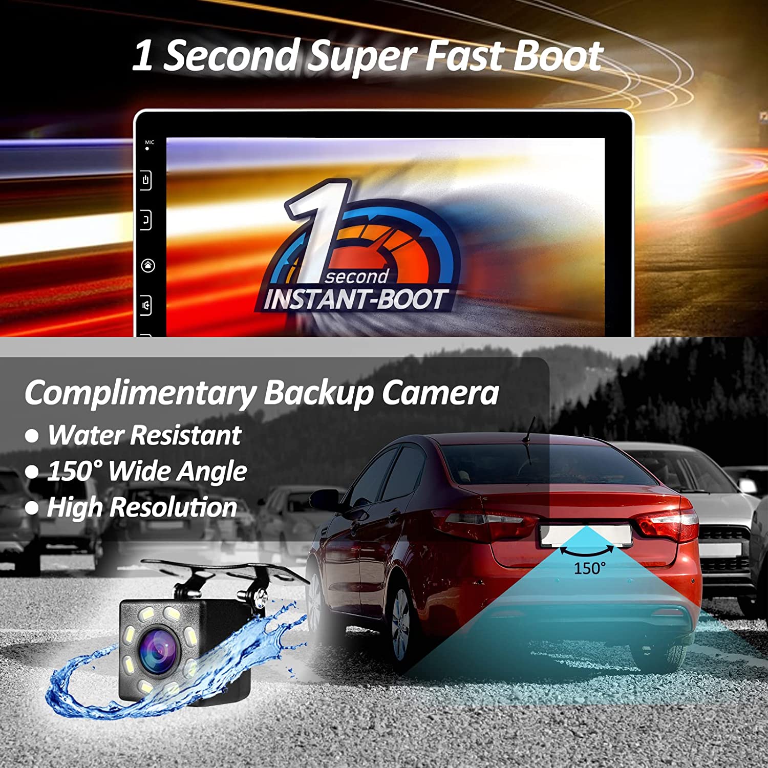 • ✔Your Car's Best Assistant - Come with a complimentary water-proof, wide-angle reverse camera. For a ride that's both safe and fun, this 10-inch double DIN car stereo comes with radio reception, steering wheel control access, and backup camera support.