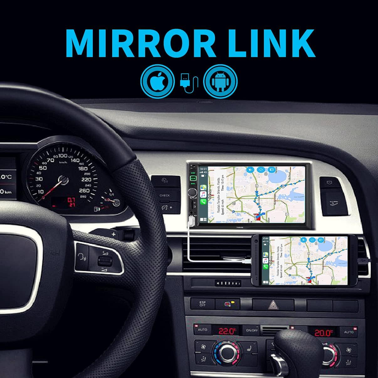 • 【Phone Mirror Link Function】Mirror Link through phone's original USB line can synchronize to the onboard screen. Through mirror-link, the car stereo will display the content from your cellphone screen synchronously. Turn on the navigation app on your phone, you will be able to use the navigation function in your car while driving.