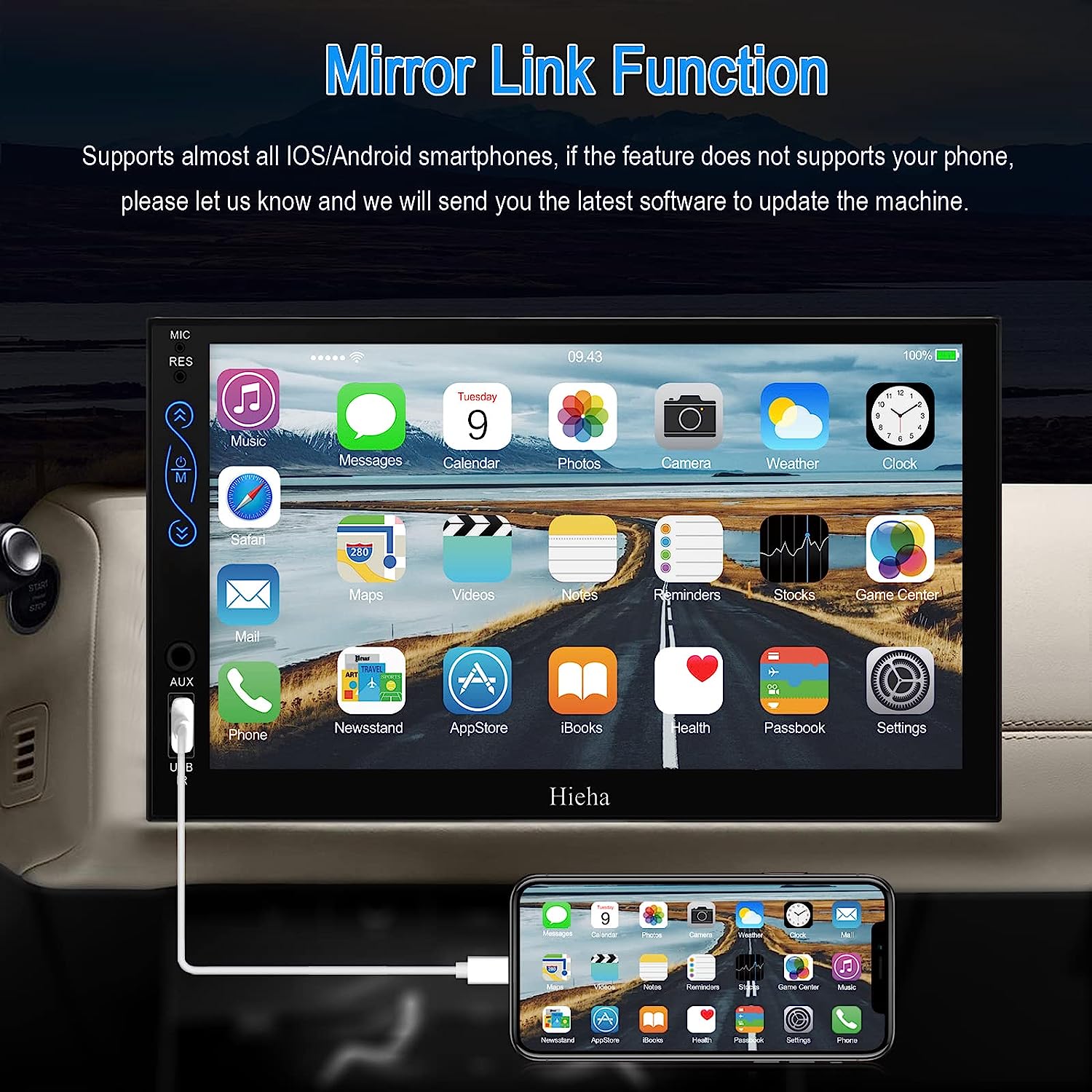 • ✔❸【Phone Mirror Link Function】: This touch screen car radio support the mirror link function of most the phone (support Android 10.1 and below, IOS 13.4 and below, iPhone XR, iPhone 11, iPhone 8 series, and below), easily connect and sync your phone any content to the large screen. (upgrade software development has been completed and supports almost all IOS/Android smartphones, if the feature does not supports your phone, we will send you the latest software to update the machine.)