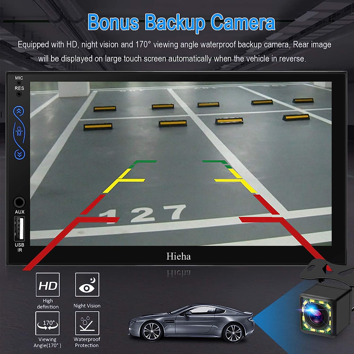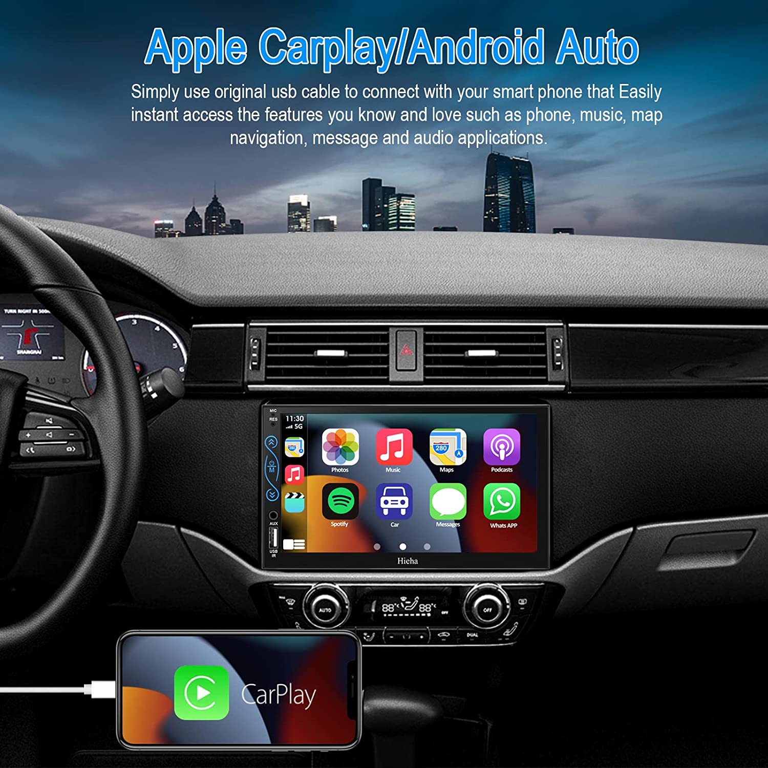 Hieha Car Stereo Compatible with Apple Carplay and Android Auto, 7 Inch Double Din Stereo with Bluetooth, Touch Screen Radios MP5 Player with A/V Input, Backup Camera, Mirror Link, SWC