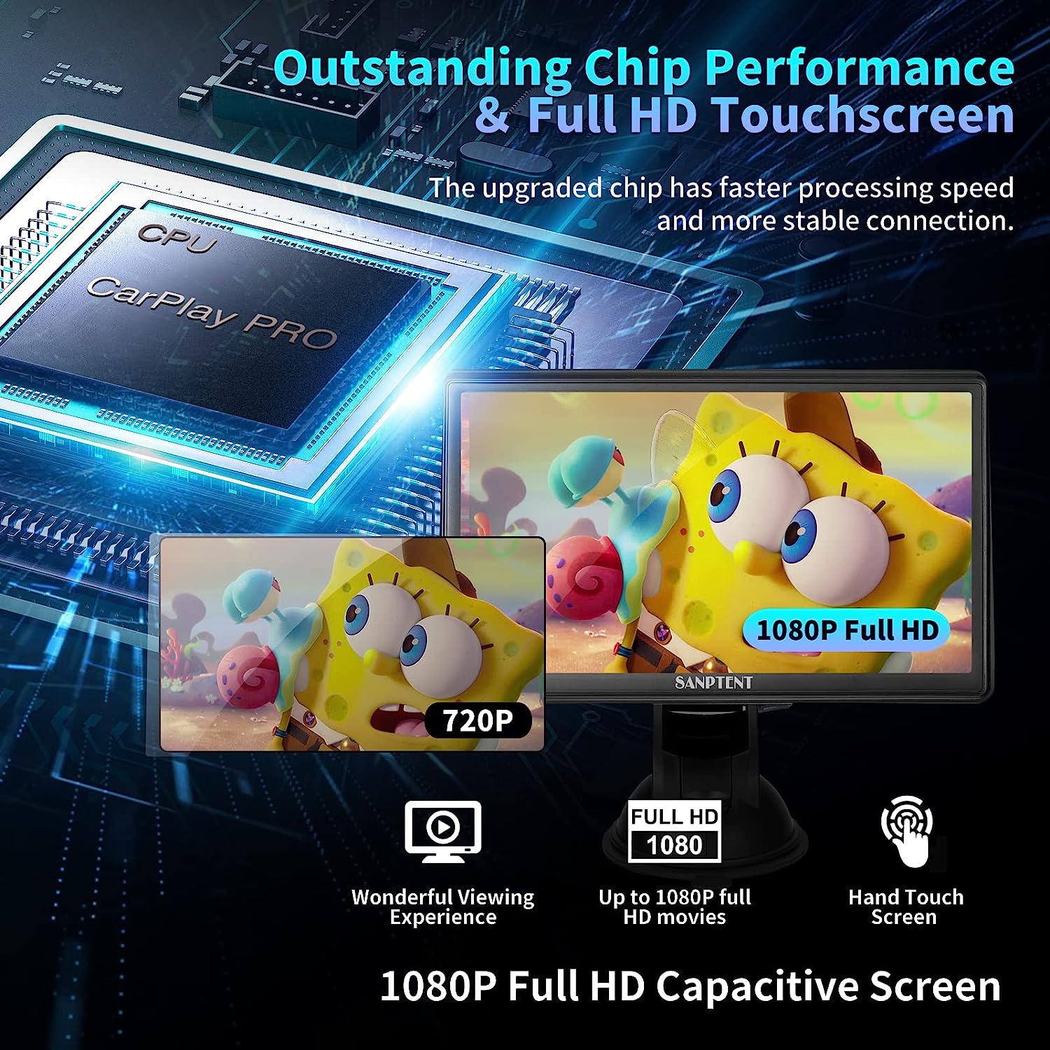 SANPTENT Wireless Apple CarPlay Dash Mount, Portable Car Stereo, Android Auto, Drivemate, 7-Inch Full HD Touchscreen, Car Audio Receiver, Bluetooth Handsfree, Car Buddy, Rear Camera, TF/USB/AUX Input