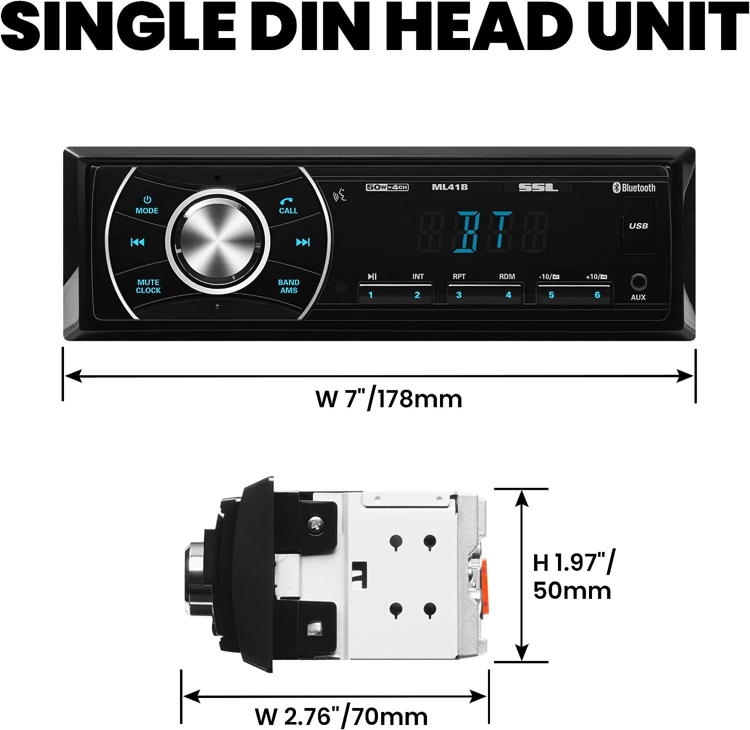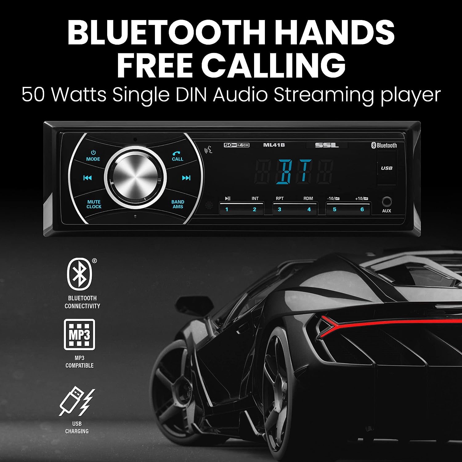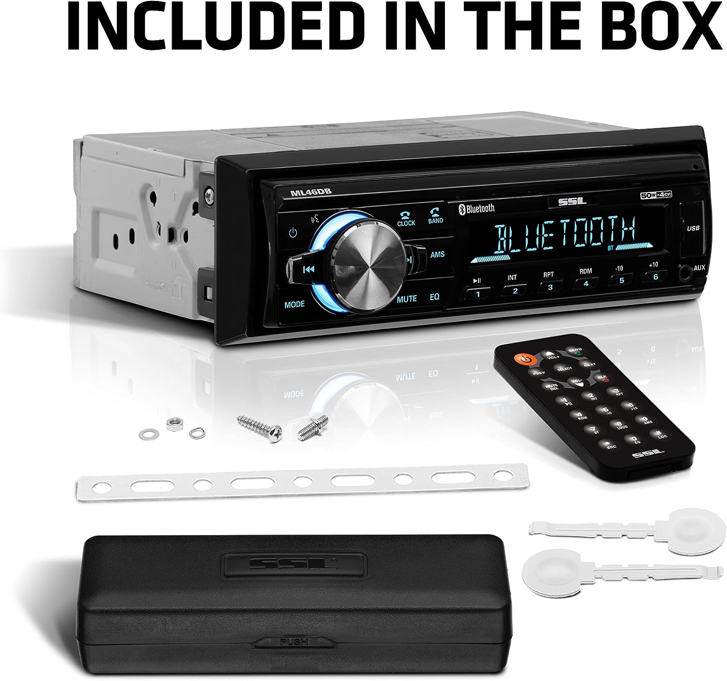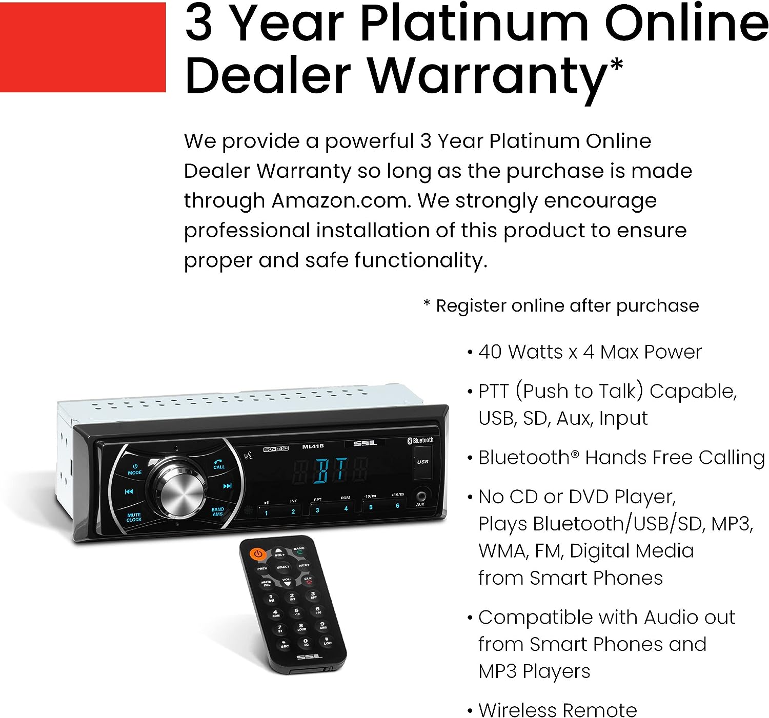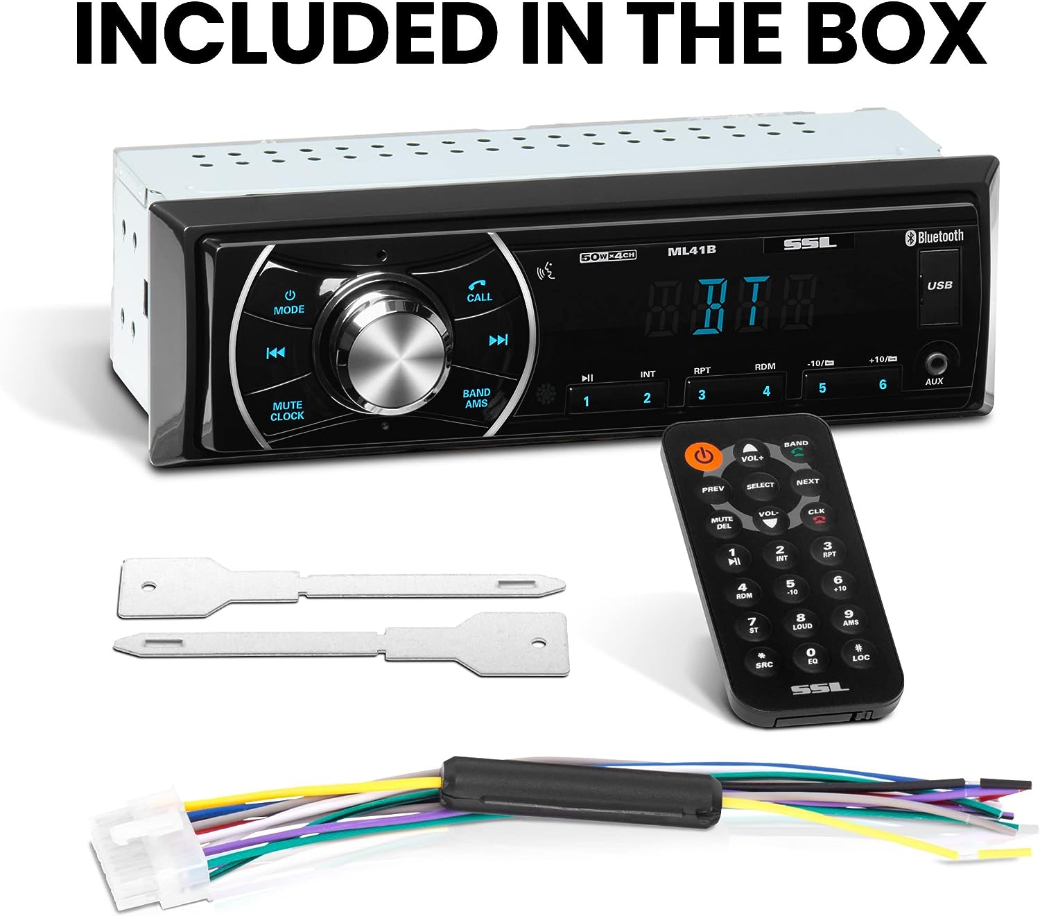 Enter the digital sound world with the Sound Storm ML41B Single-DIN Mech-Less (No CD/DVD) Digital Media Receiver. Hook your Smartphone or MP3 Player up with the Auxiliary Input, turn on the FM radio or plug into the USB and SD ports to pump out your own personal playlists. Bluetooth technology lets you play and control music apps like Pandora and Spotify and make calls hands-free. Control it all with the wireless remote. Embrace digital sound with the Sound Storm ML41B.