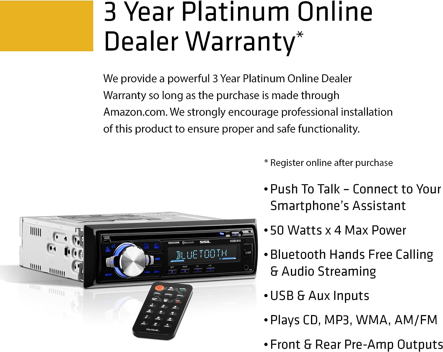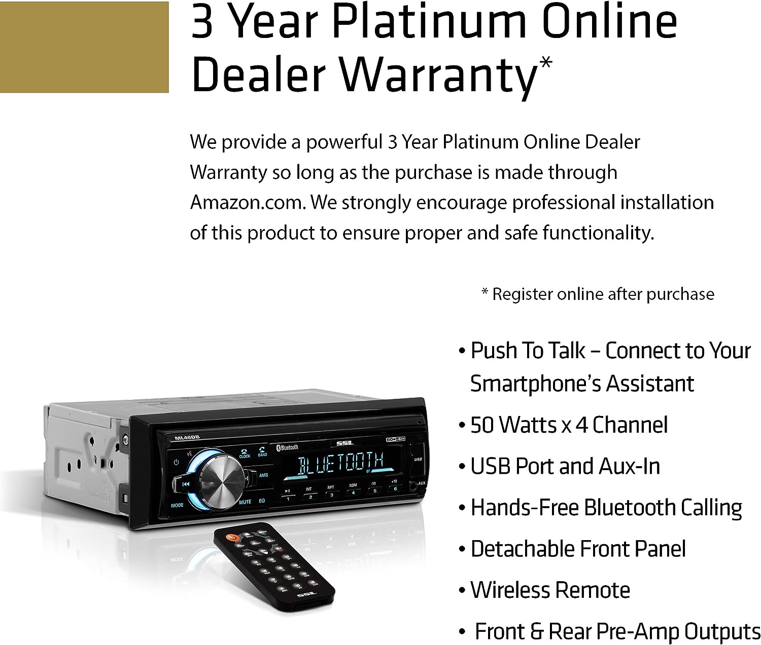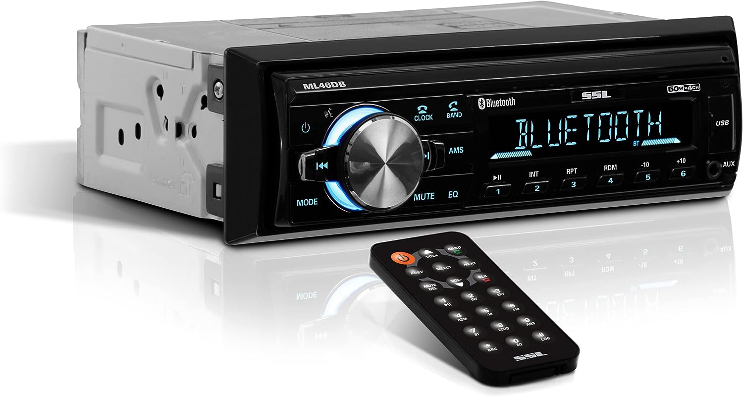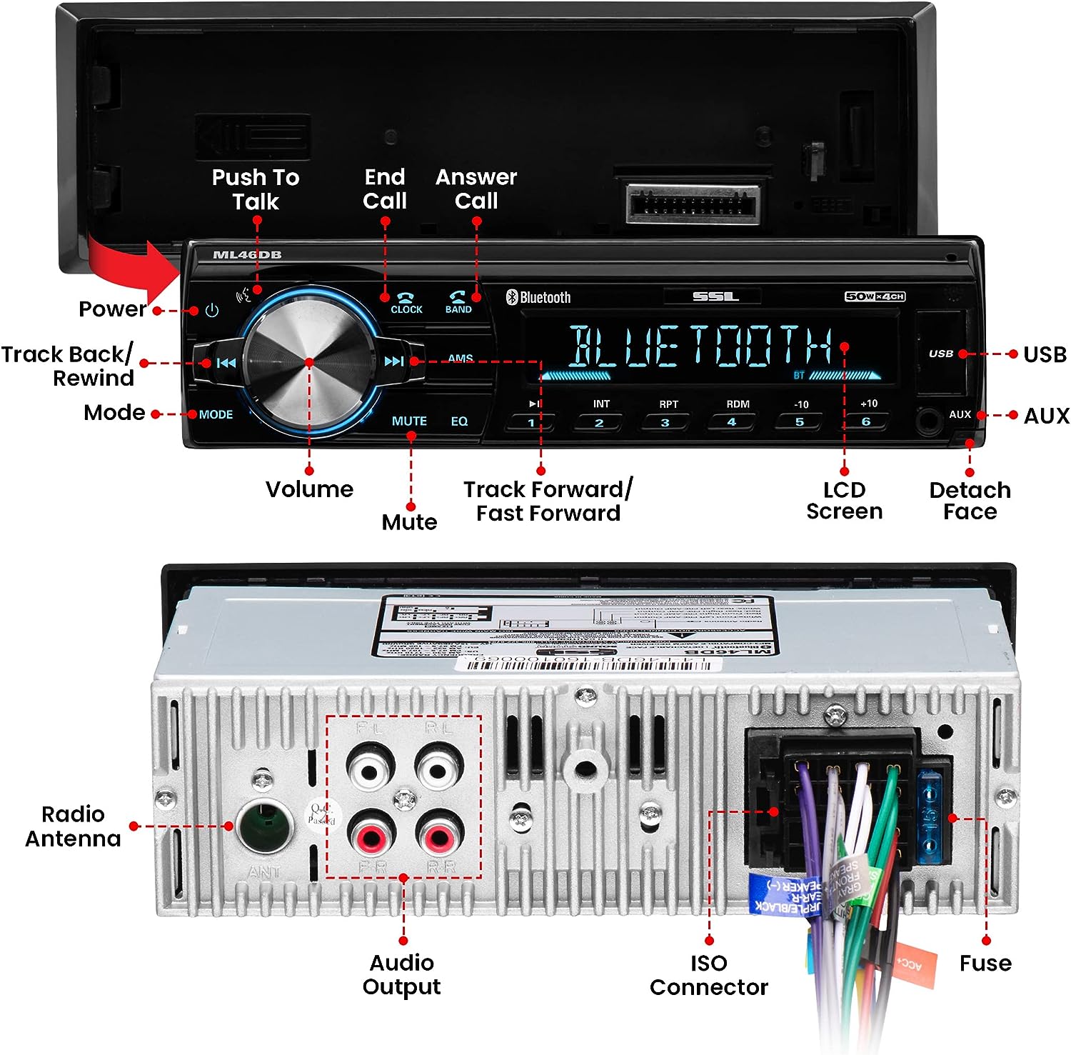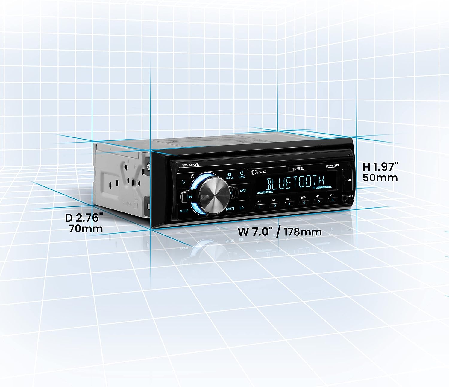 Enter the digital sound world with the Sound Storm ML41B Single-DIN Mech-Less (No CD/DVD) Digital Media Receiver. Hook your Smartphone or MP3 Player up with the Auxiliary Input, turn on the FM radio or plug into the USB and SD ports to pump out your own personal playlists. Bluetooth technology lets you play and control music apps like Pandora and Spotify and make calls hands-free. Control it all with the wireless remote. Embrace digital sound with the Sound Storm ML41B.