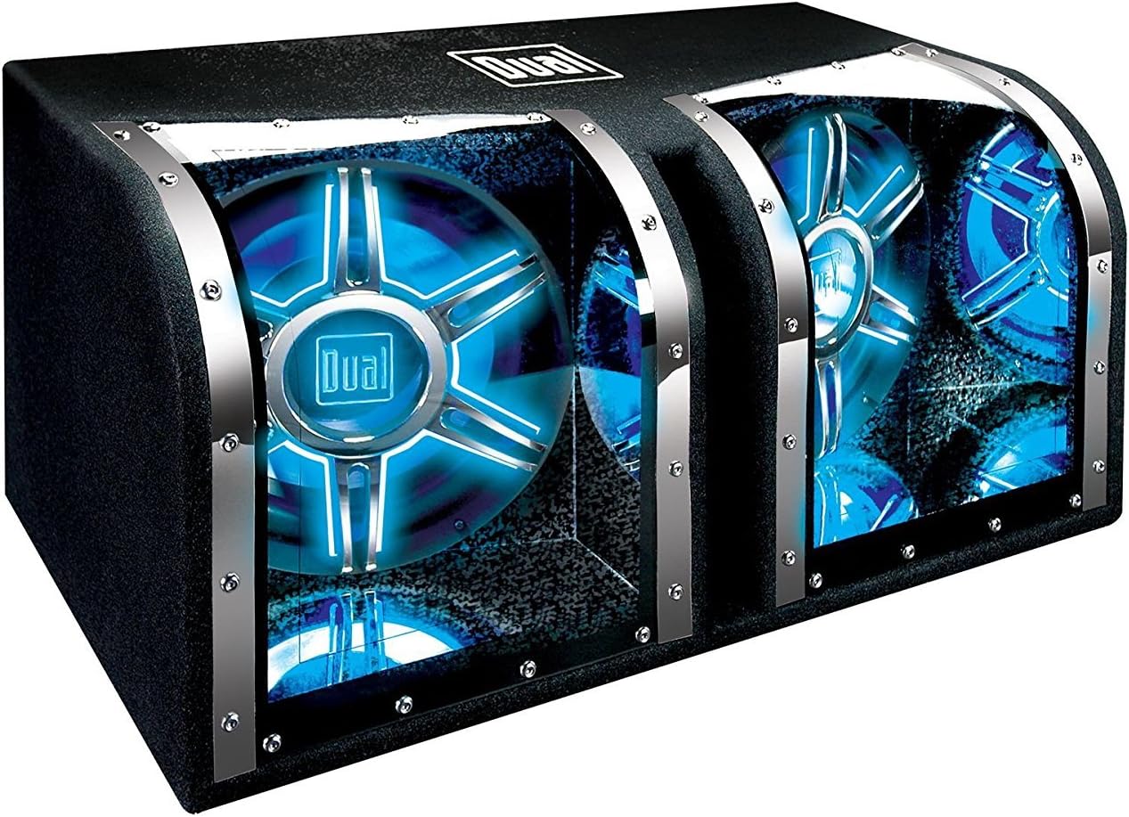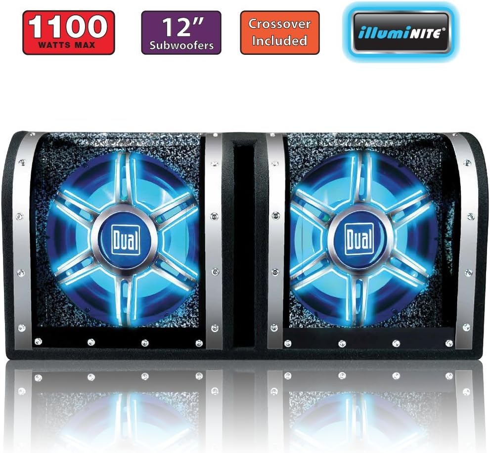 Dual Electronics BP1204 High Performance 12 inch Car Audio Subwoofers in a Tuned Bandpass Enclosure with Blue illumiNITE LED Illumination and Plexiglass Viewing Windows and 1,100 Watts of Peak Power