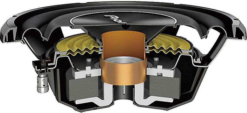 The Pioneer A Series of Shallow Mount Subwoofers uses a highly rigid cone made with MICA injected molded resin which creates a rigid and durable cone. This gives them the ability to produce accurate bass. The TS-A2500LS4 10 in. shallow mount subwoofer has multiple, patent-pending features that deliver the big bass performance of a full size subwoofer, but in a compact design that can be installed either behind or under seats, depending on the type of vehicle.