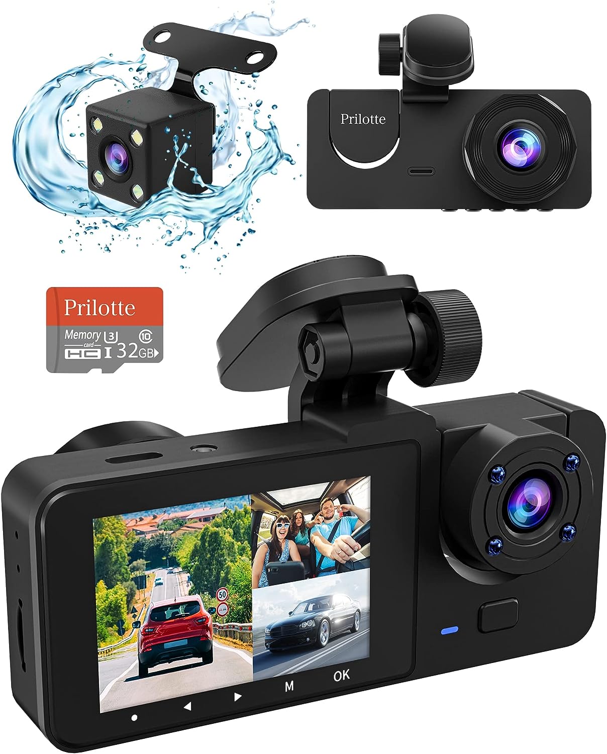 3 Channel Dash Cam Front and Rear Inside,1080P Full HD 170 Deg Wide Angle Dashboard Camera with 32GB SD Card,2.0 inch IPS Screen,Built in IR Night Vision,G-Sensor,Loop Recording,24H Parking Recording