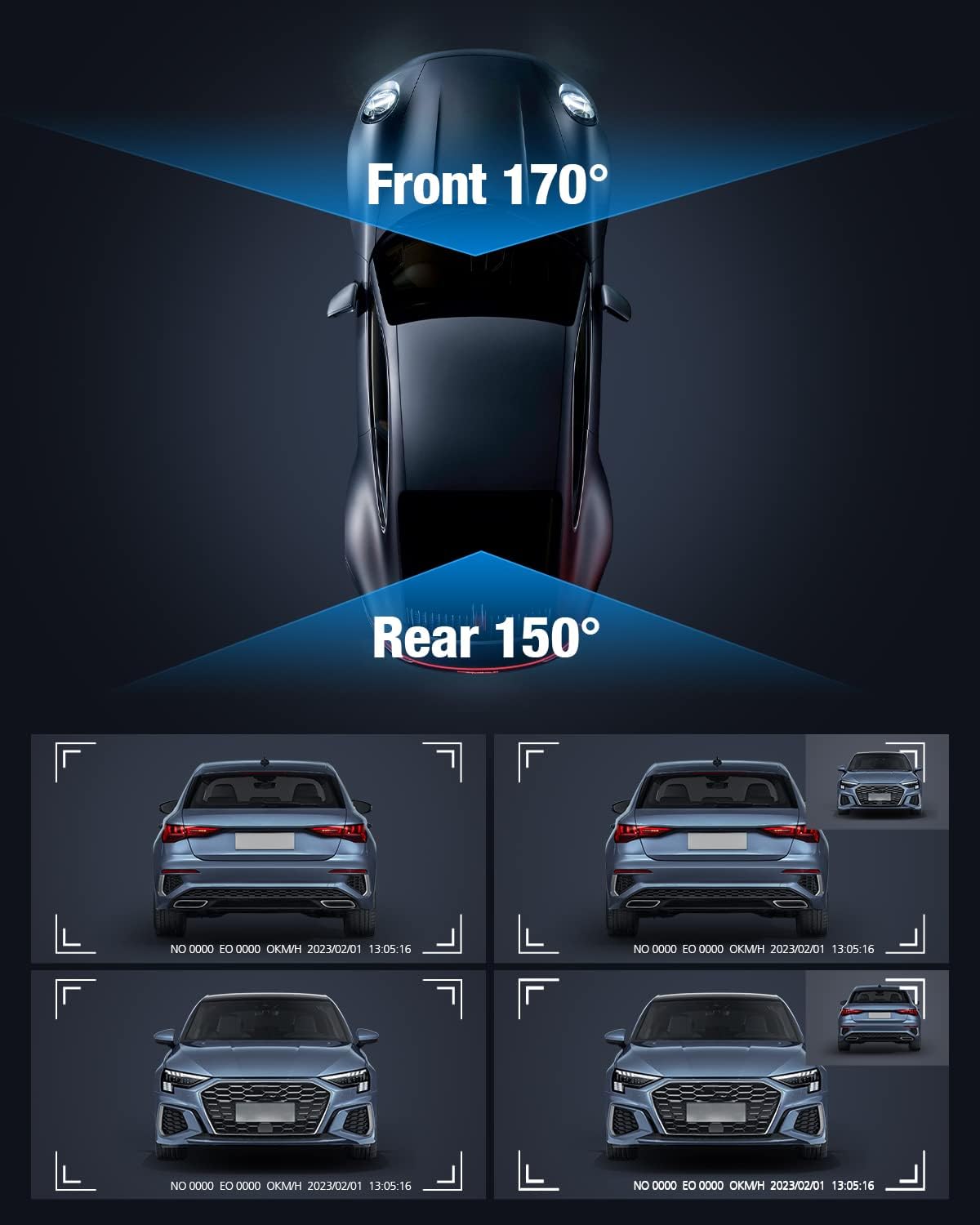 • 【WDR & Super Night Vision】OMBAR dual dash cam adopts the Super Night Vision Technology (NT96670 chipset + GC4653 sensor), with F1.8 aperture and WDR, helps to get clearer footage and images from the recording in low light condition.