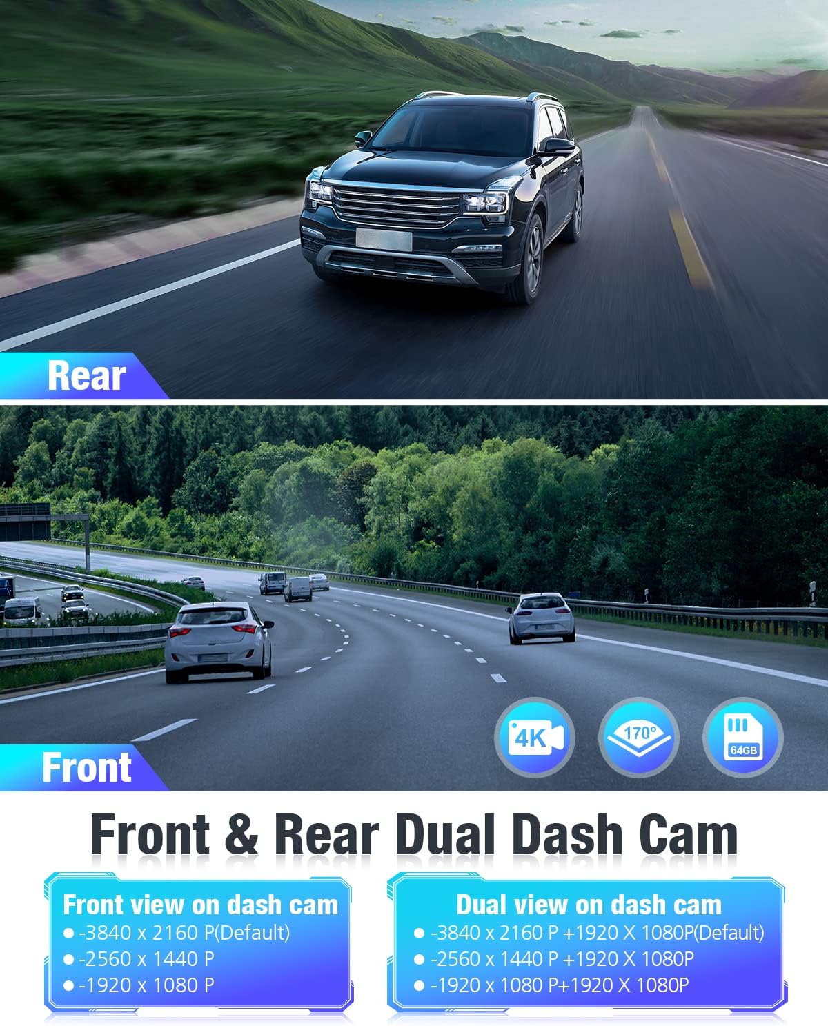 OMBAR Dash Cam Front and Rear 4K/2K/1080P+1080P 5G WiFi GPS, Dash Camera for Cars with Free 64G SD Card, Dual Dash Cam with WDR Night Vision, 24h Parking Mode,170°Wide, G-Sensor, Loop Recording, APP