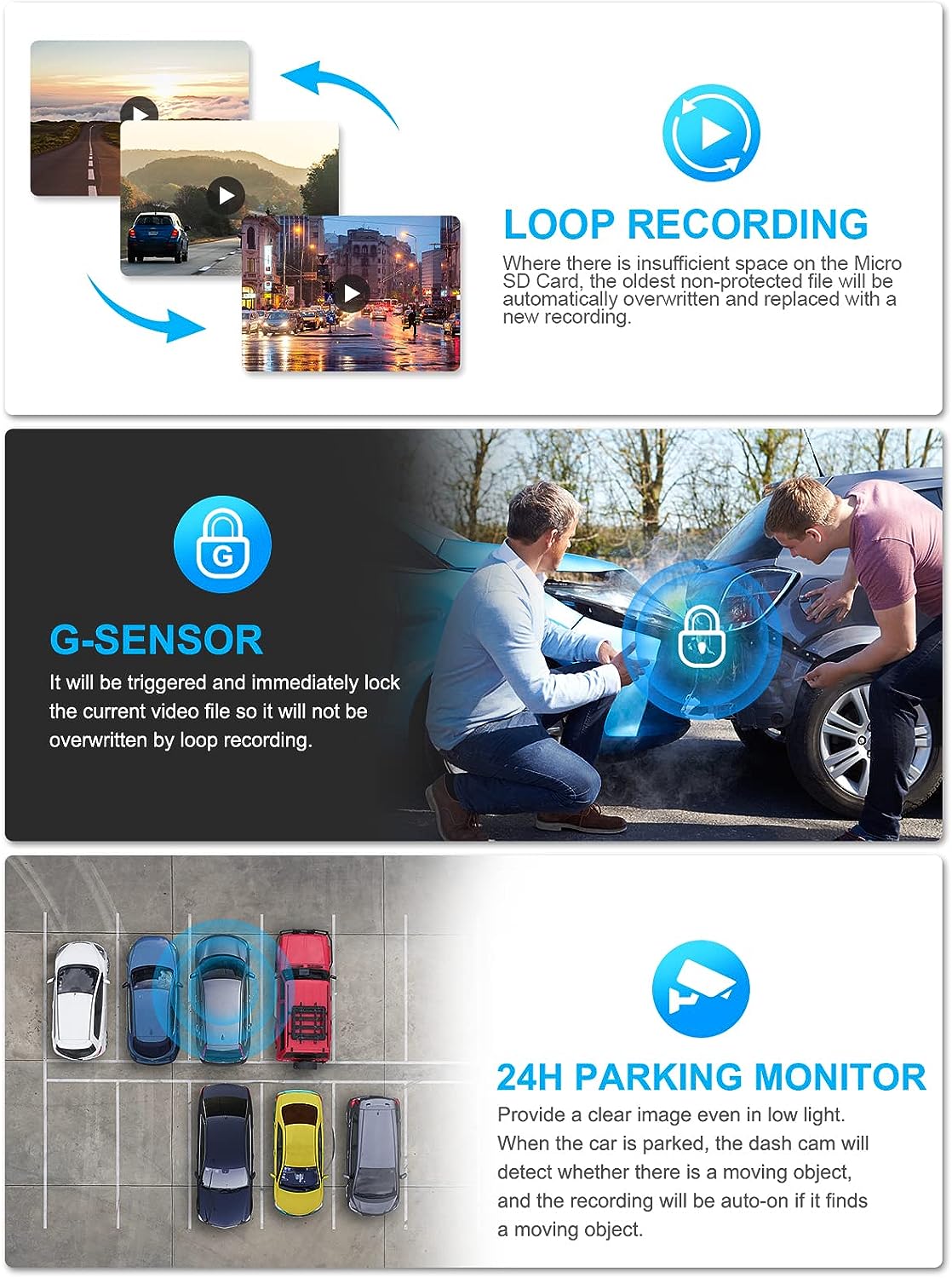 • [Quality Night Vision and Reassuring All-Weather Monitor] The cabin cameras have an F1.8 aperture and 4 infrared lights. In addition to producing incredibly clear recordings, its image performance will be far superior to that of other dash cams at night. The three cameras also have the latest, most sensitive night vision image sensor integrated right into them, so they can capture stunning images even in pitch-black spaces at night that protects you around the clock.