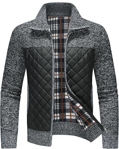 Lamgool Men's Full Zip Sweater Long Sleeve Casual Slim Fit Cardigan Sweaters