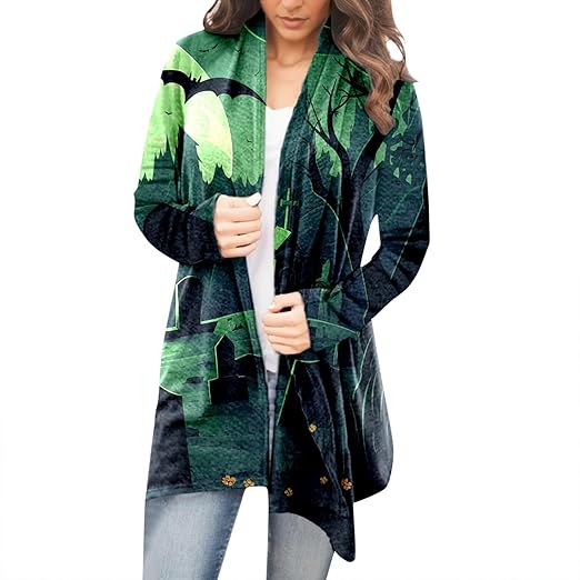 Women Halloween Tops Casual Print Long Sleeve Loose Fashion Jacket Daily Cardigan Cardigan Outfits Halloween Womens Sweatshir