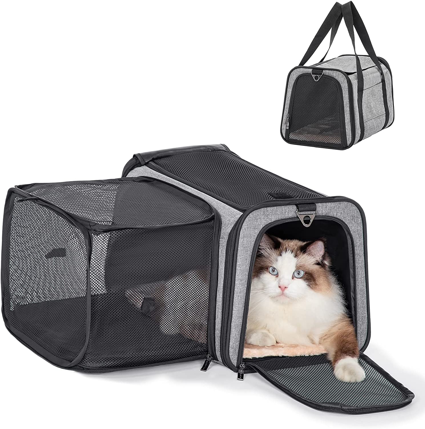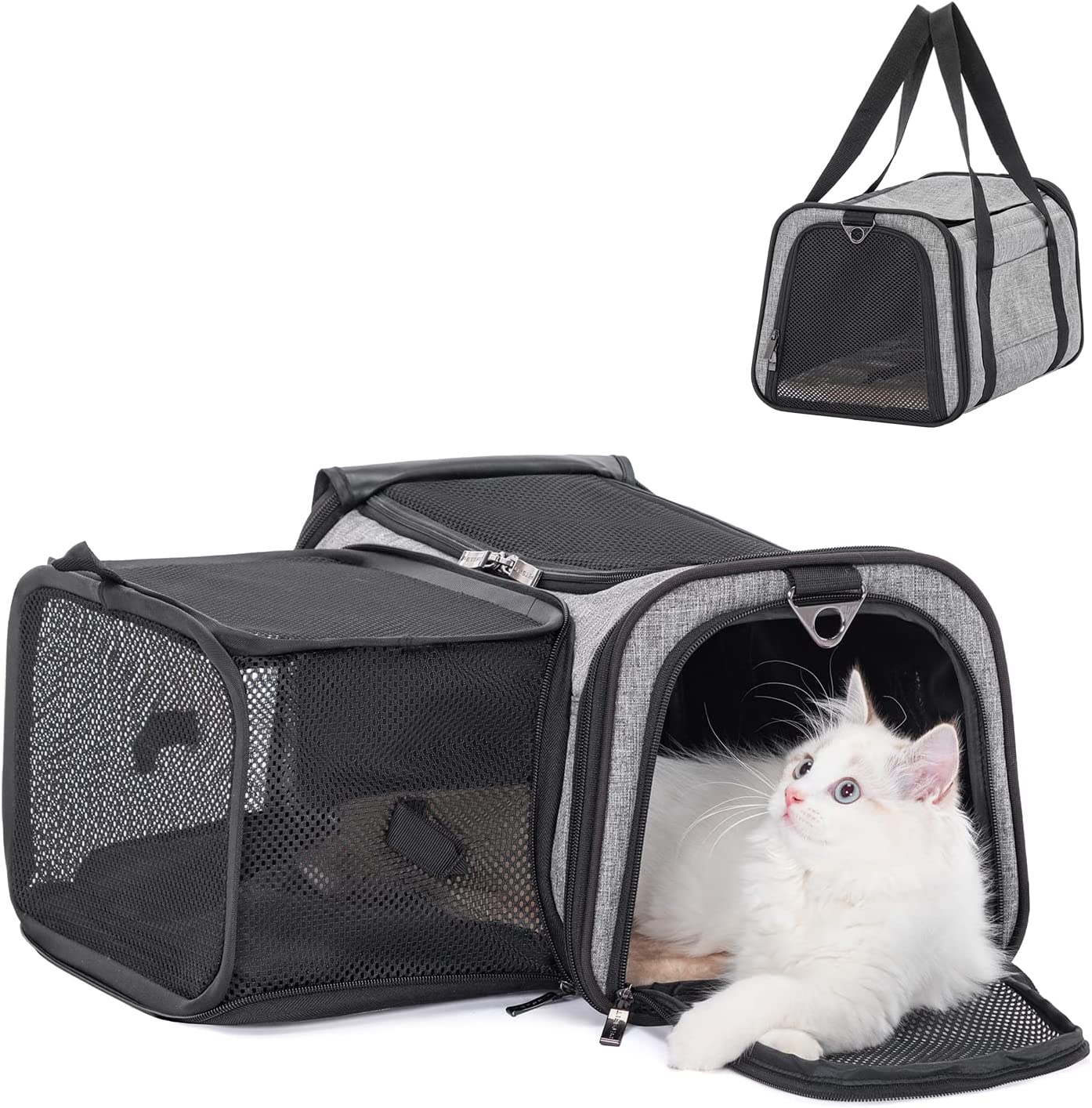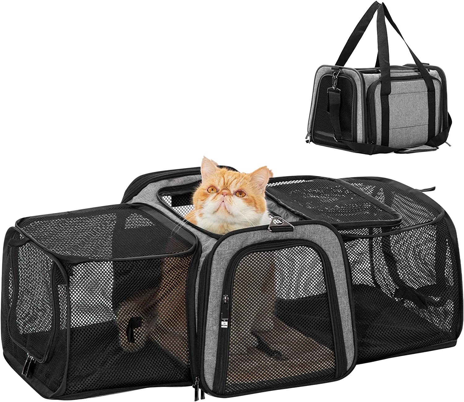 Petsfit Expandable Pet Carrier Airline Approved, Cat Carrier with Locking Zipper and Shoulder Strap, Storage Pockets, Cats, Kittens Puppies or Small Dog up to 20 Pounds,Gray M