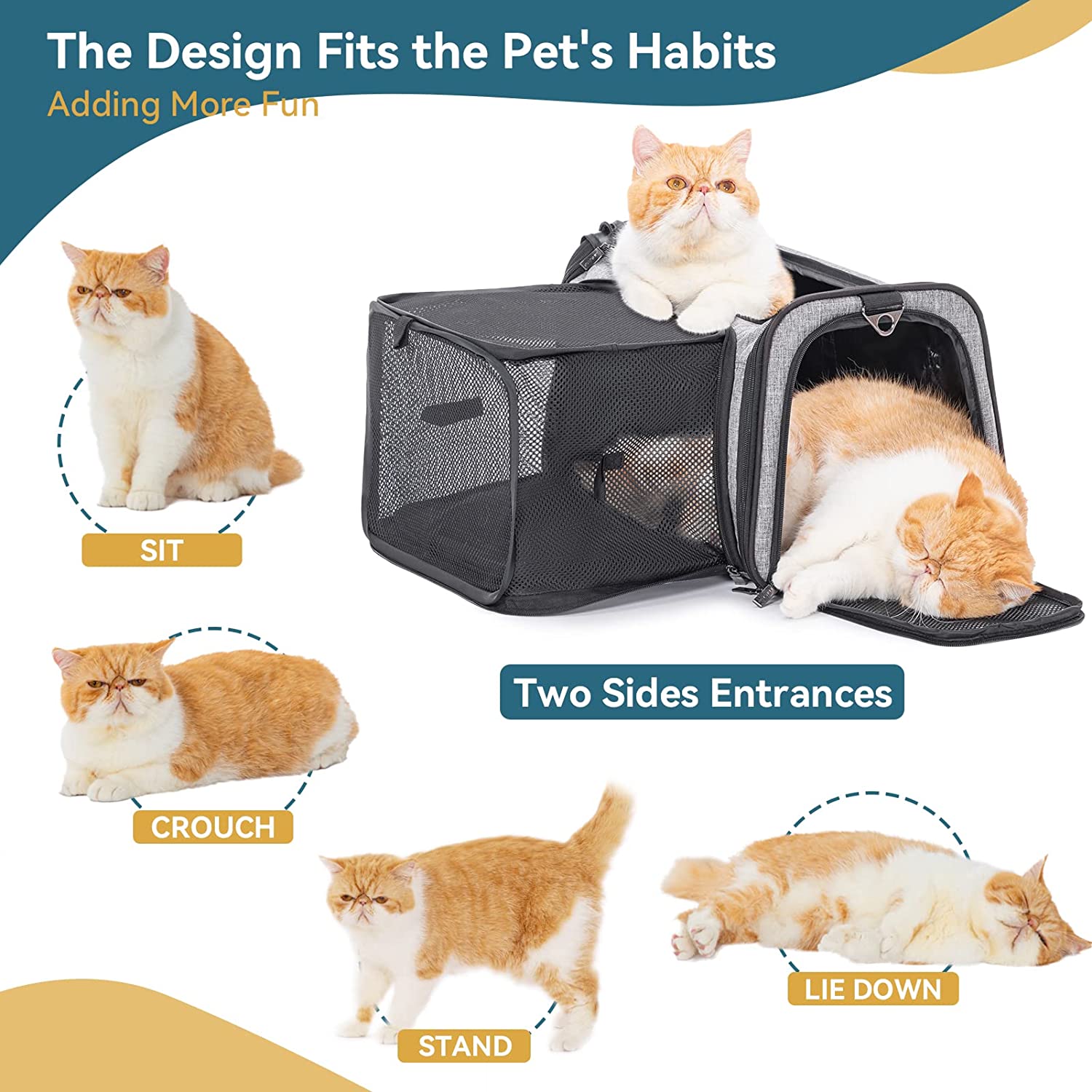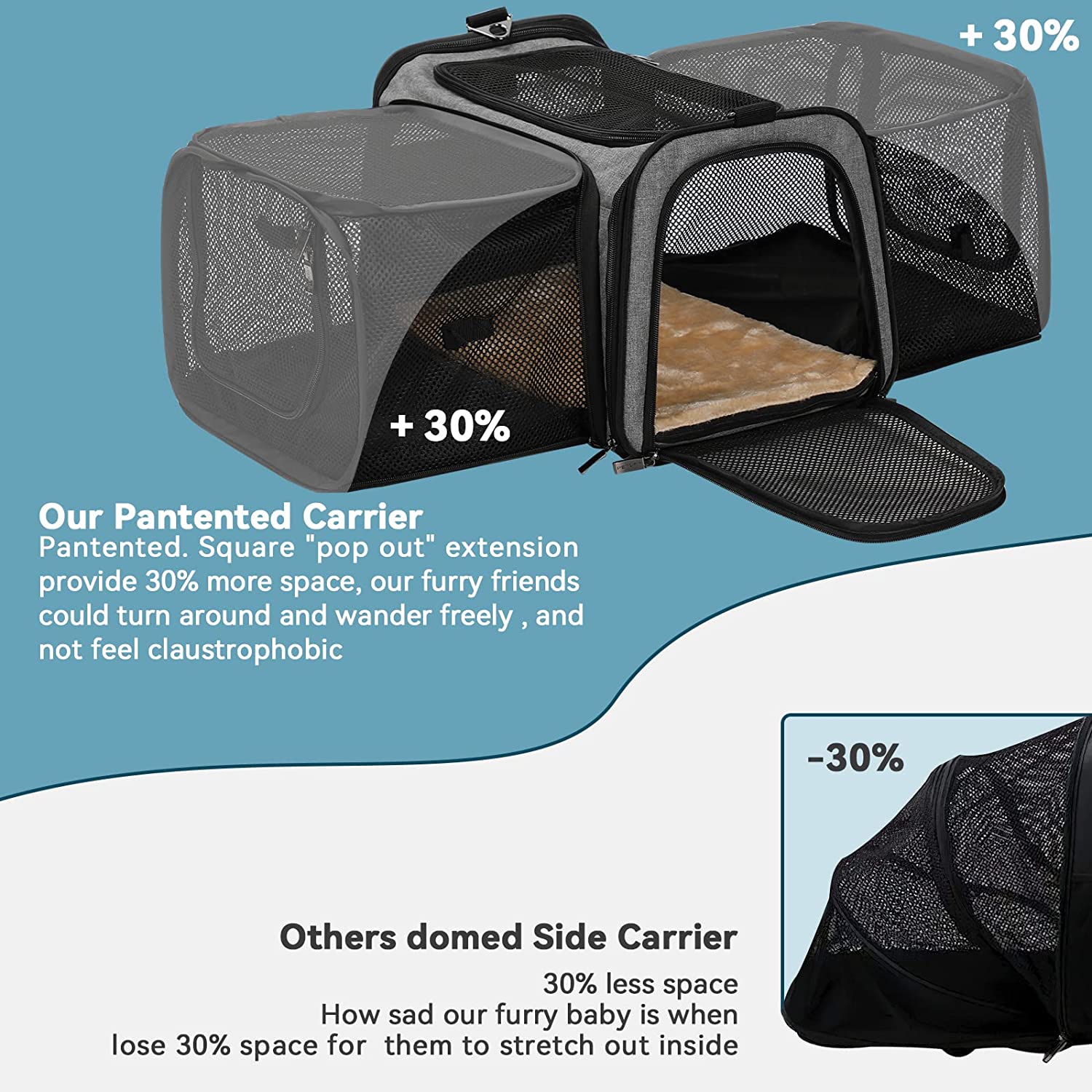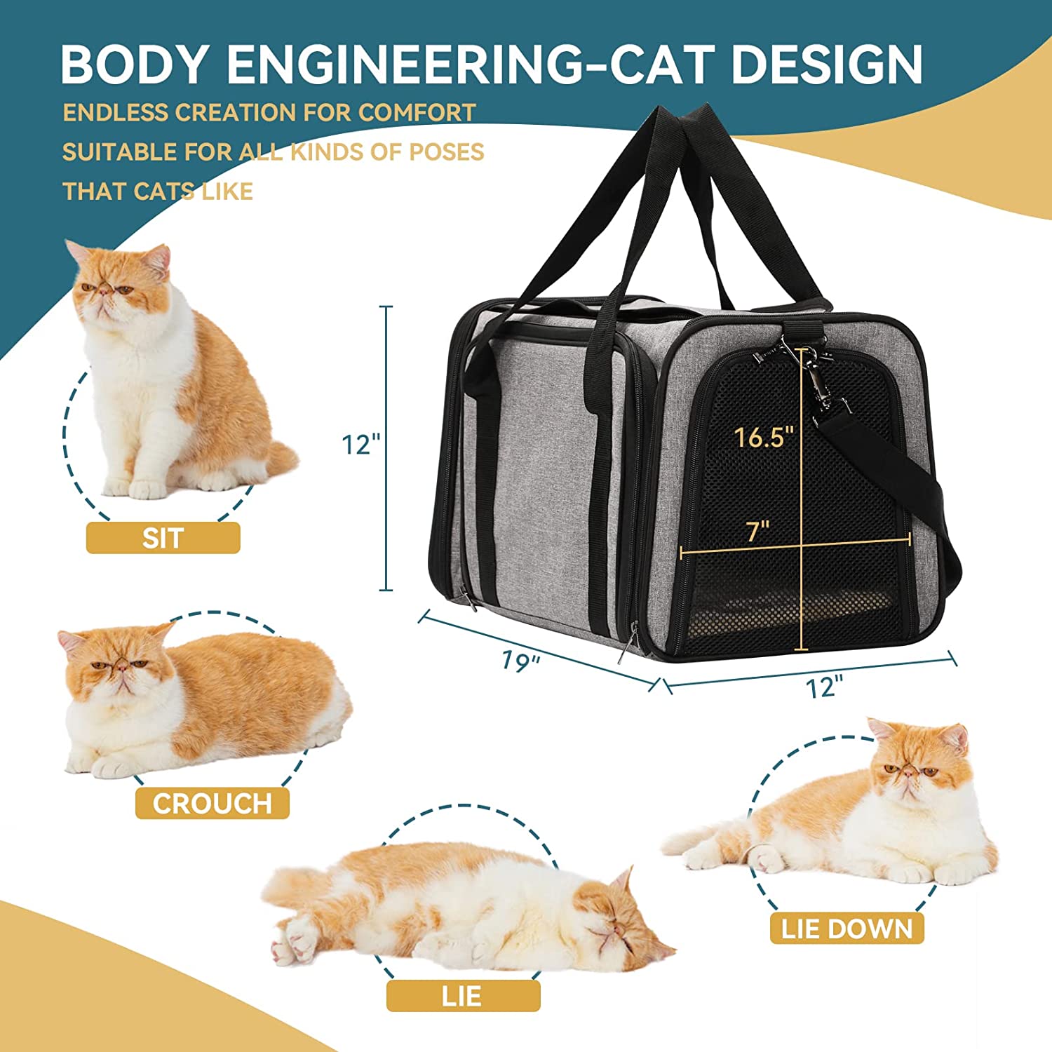 • Special Design of The Cat Carrier: When fully expanded the pet carrier your pet will enjoy a comfortable travel space, enough for pets to turn around. When closing expansion, the size: 17” x 11” x 11”conforms to most airlines.