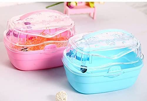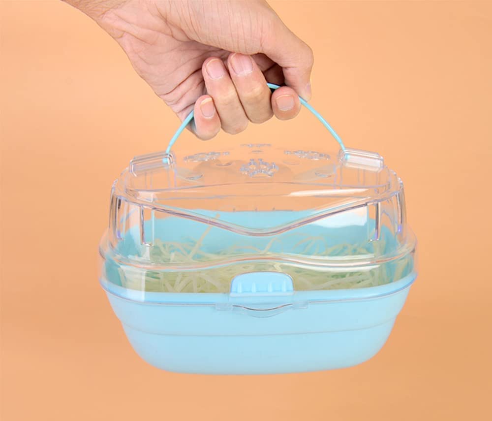 Portable Carrier Hamster Carry Case Cage with Water Bottle Travel&Outdoor for Hamster Small Animals (Blue)
