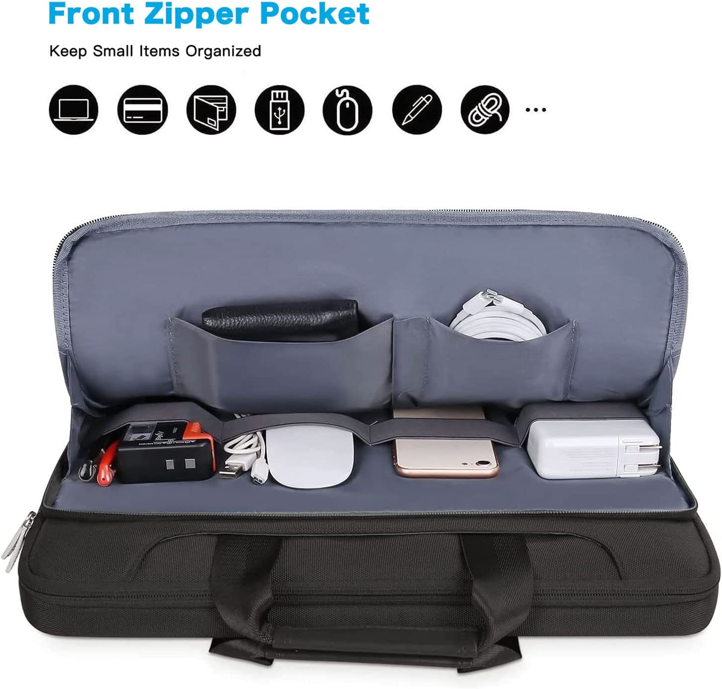• Matching color removable and adjustable padding shoulder strap varied from 29.5 - maximum 52.3 inch, top handles also can tuck away in the pockets when not needed. Large front pocket with inner small pocket keep all your daily accessories well organized. Proviode enough space to keep mouse, pens, mobile phone, cables, cards and other small accessories.