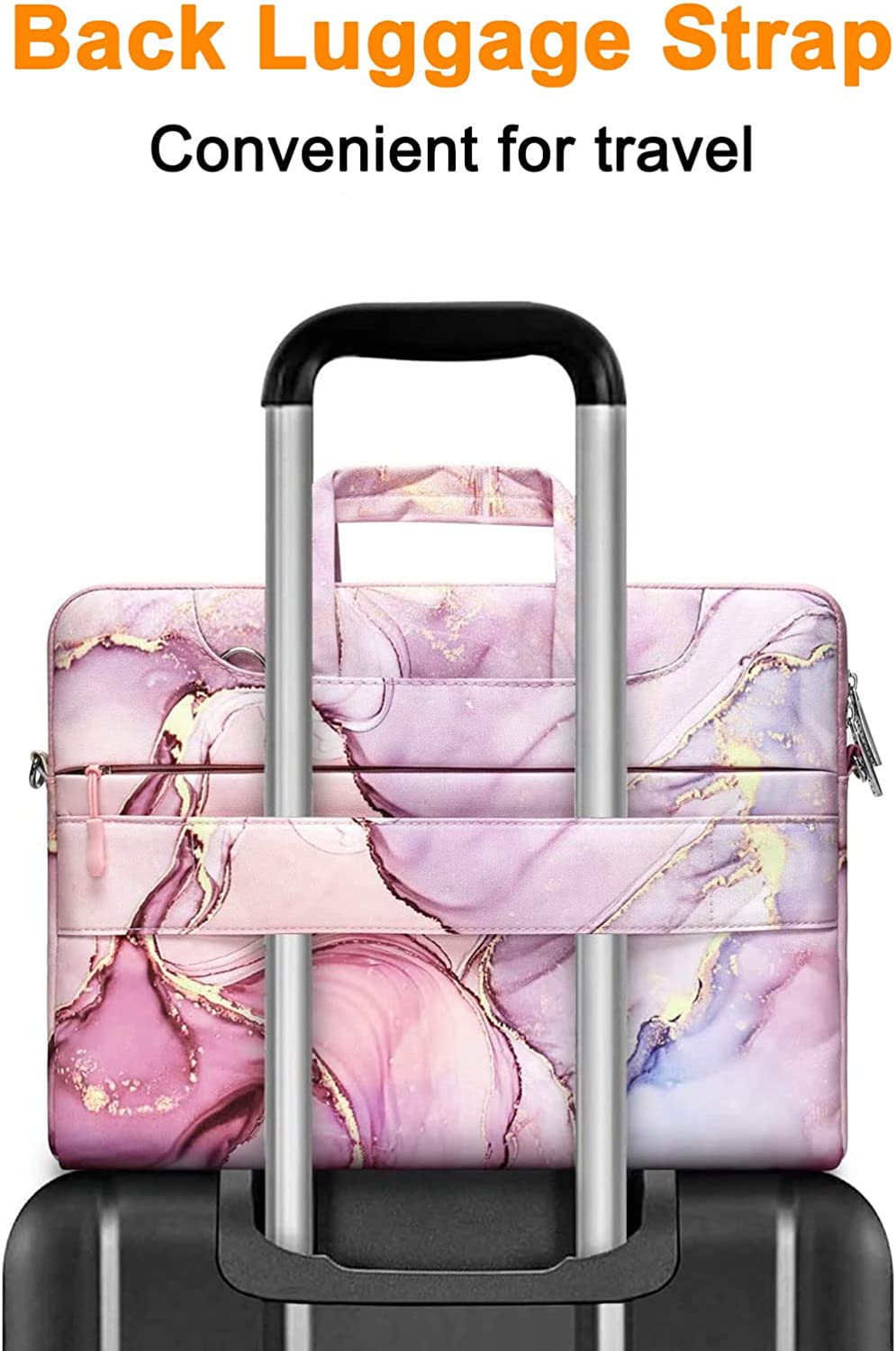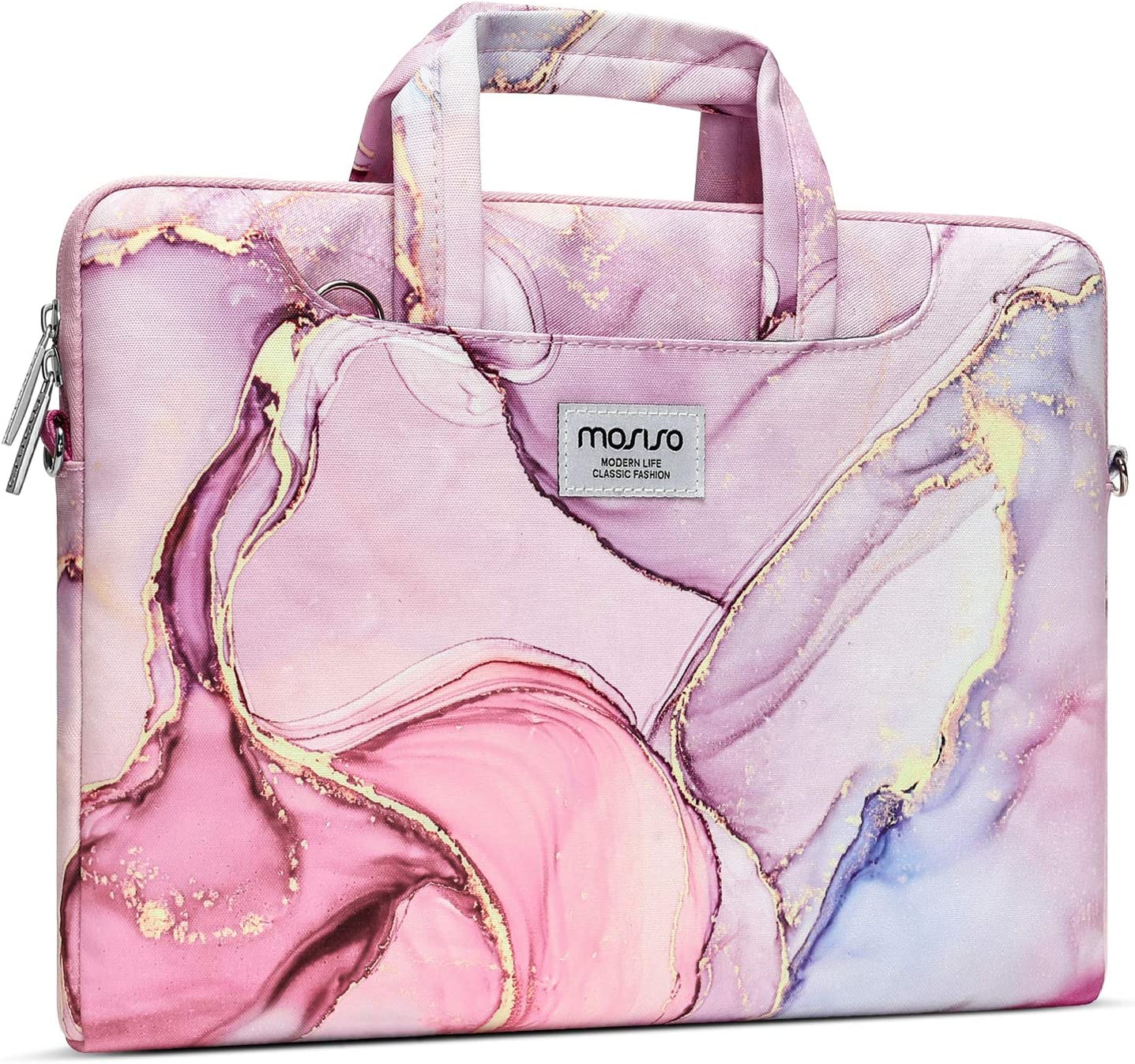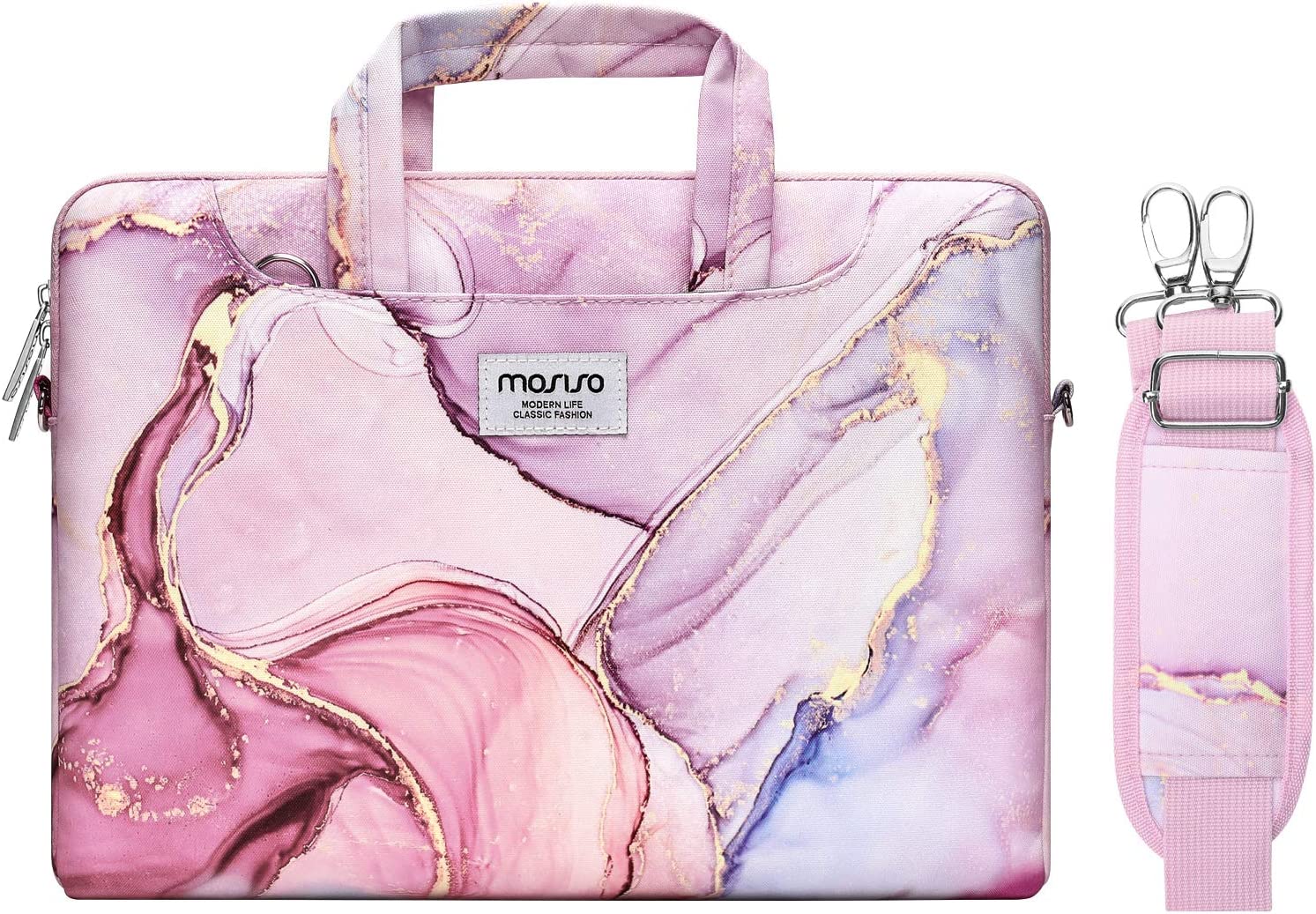 MOSISO Laptop Shoulder Bag Compatible with MacBook Pro 16 inch 2023-2019 M2 A2780 M1 A2485 Pro/Max A2141/Pro Retina 15 A1398,15-15.6 inch Notebook,Polyester Briefcase Sleeve with Belt Marble MO-MBH216