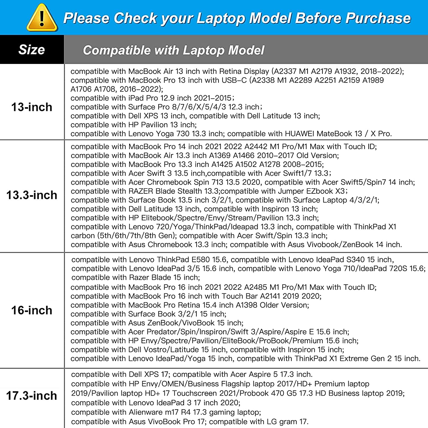 • Compatible with MacBook Pro 16 inch 2023-2021 M2 A2780 M1 A2485 Pro/Max Touch ID, compatible with MacBook Pro 16 A2141 2019 2020, compatible with MacBook Pro Retina 15.4 A1398; Compatible with Surface Book 3/2/1 15; Compatible with Asus ZenBook/VivoBook 15; Compatible with Acer Swift 3 14/Swift 5 15.6, compatible with Acer Aspire 3/5/7 15.6; Compatible with HP ProBook/Spectre x360/Envy x360 15.6; compatible with HP Omen/Pavilion x360 15.6; Compatible with Dell XPS/Precision/Vostro/Latitude 15.