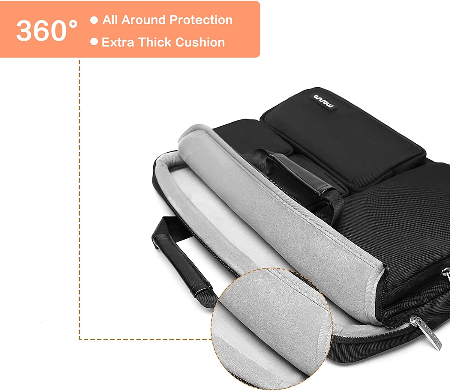• 360 degree all around protective reinforced interior edge briefcase carrying case bag protect your laptop from any accidental dropping. Features a polyester foam padding layer and fluffy fleece fabric lining for bump and shock absorption and protection of your computer from accidental scratches. Top-loading double zipper on the bag glides smoothly and allows convenient access to your laptop computer.