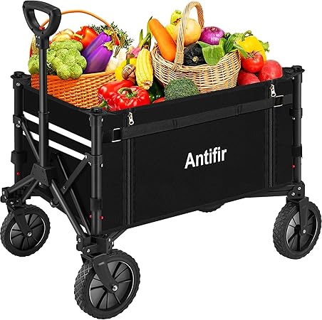 Collapsible Wagon with Large Capacity, Utility Wagons Carts Heavy Duty Foldable, Portable Folding Wagon with All-Terrain Wheels for Grocery Gardening Sports Shopping Fishing (Black)