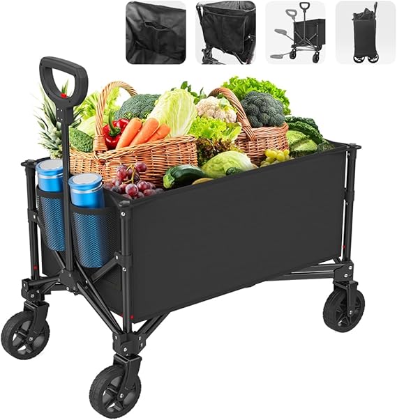 dbest products Cruiser Cart Deluxe 2 Shopping Grocery Rolling Folding Laundry Basket on Wheels Foldable Utility Trolley Compact Lightweight Collapsible, Silver