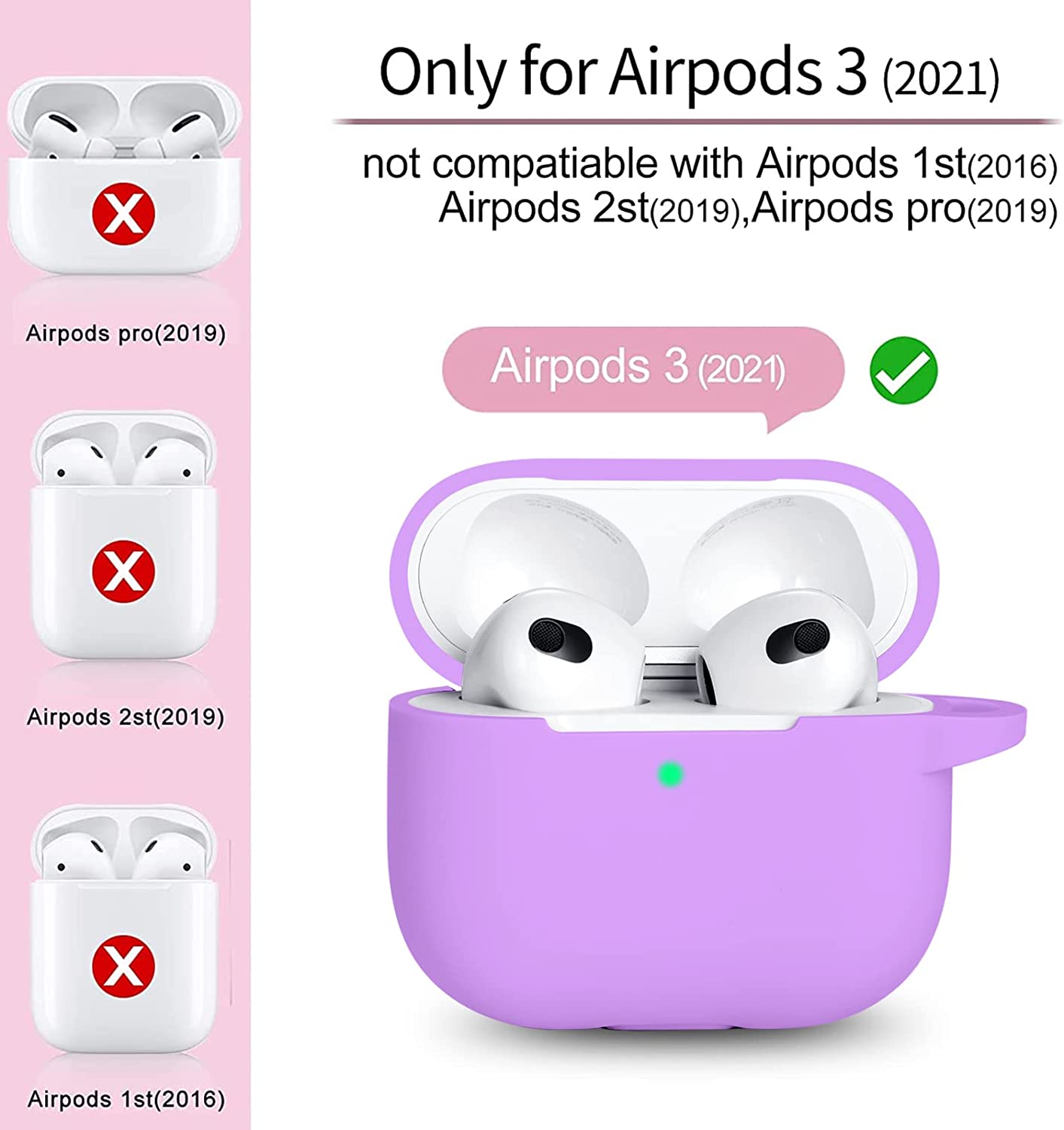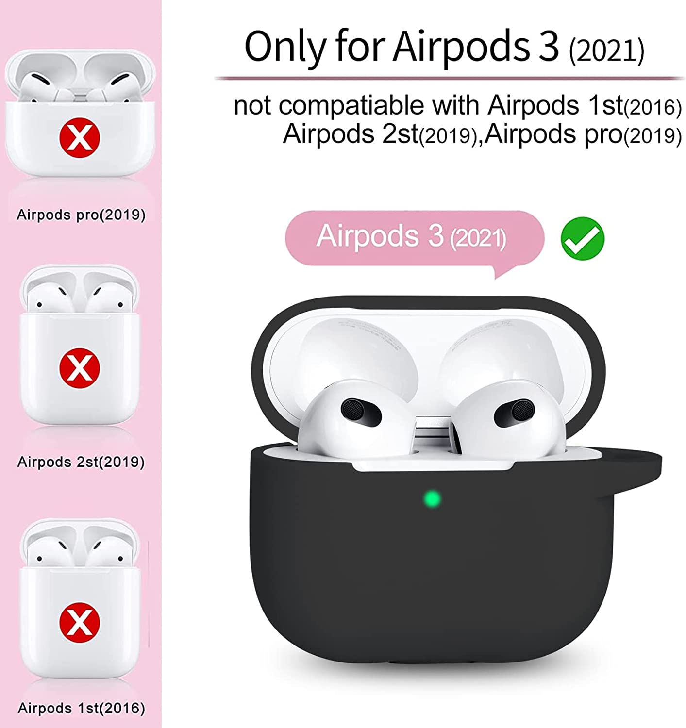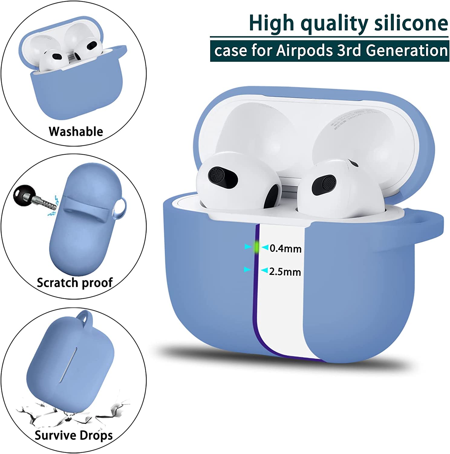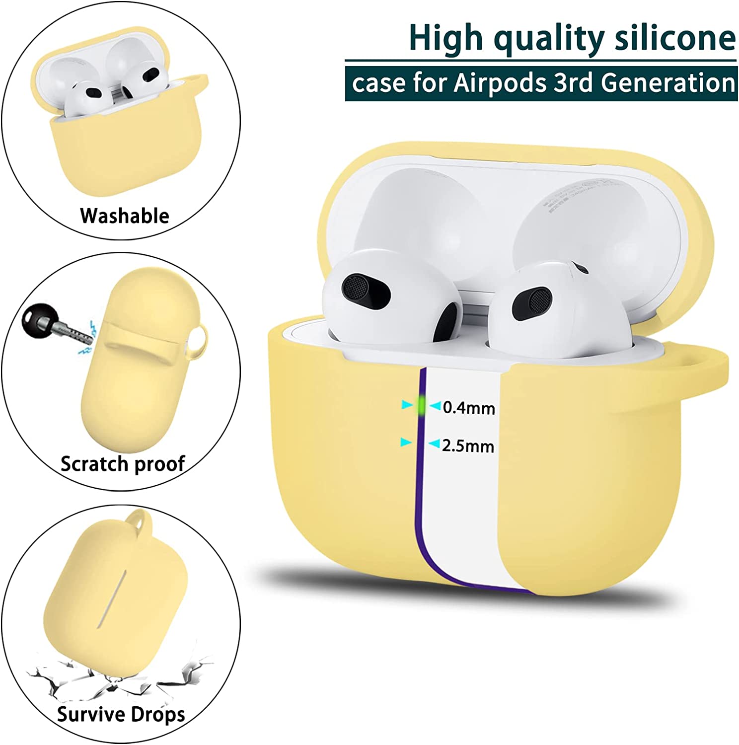 • Premium Material: Made of high quality elastomer silicone, prevents your skin from irritation; waterproof, sweatproof and scratchproof and keep your Airpods 3 case more security