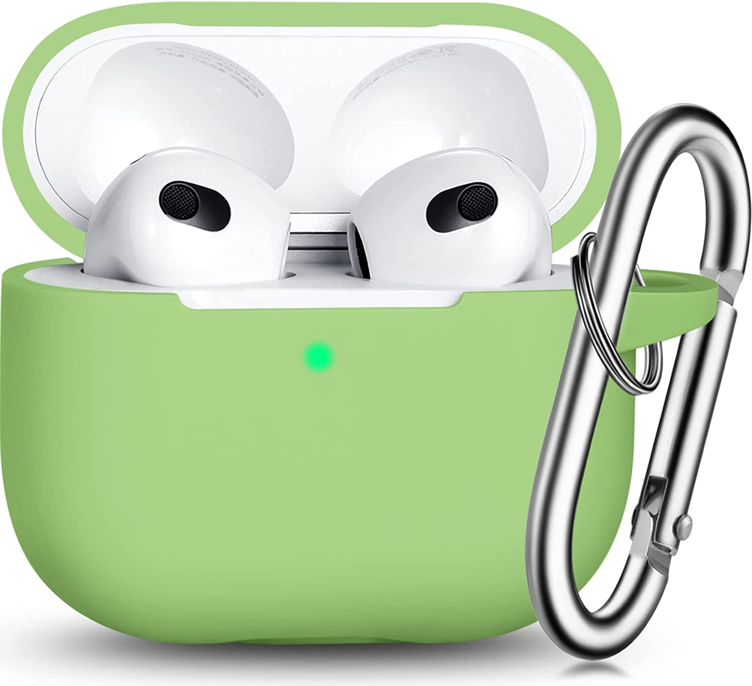 R-fun AirPods 3 Case Cover, Silicone Protective Accessories Skin with Keychain Compatible with Apple AirPod 3rd Generation 2021 for Women Men Girls Boys,Front LED Visible-Pine Green
