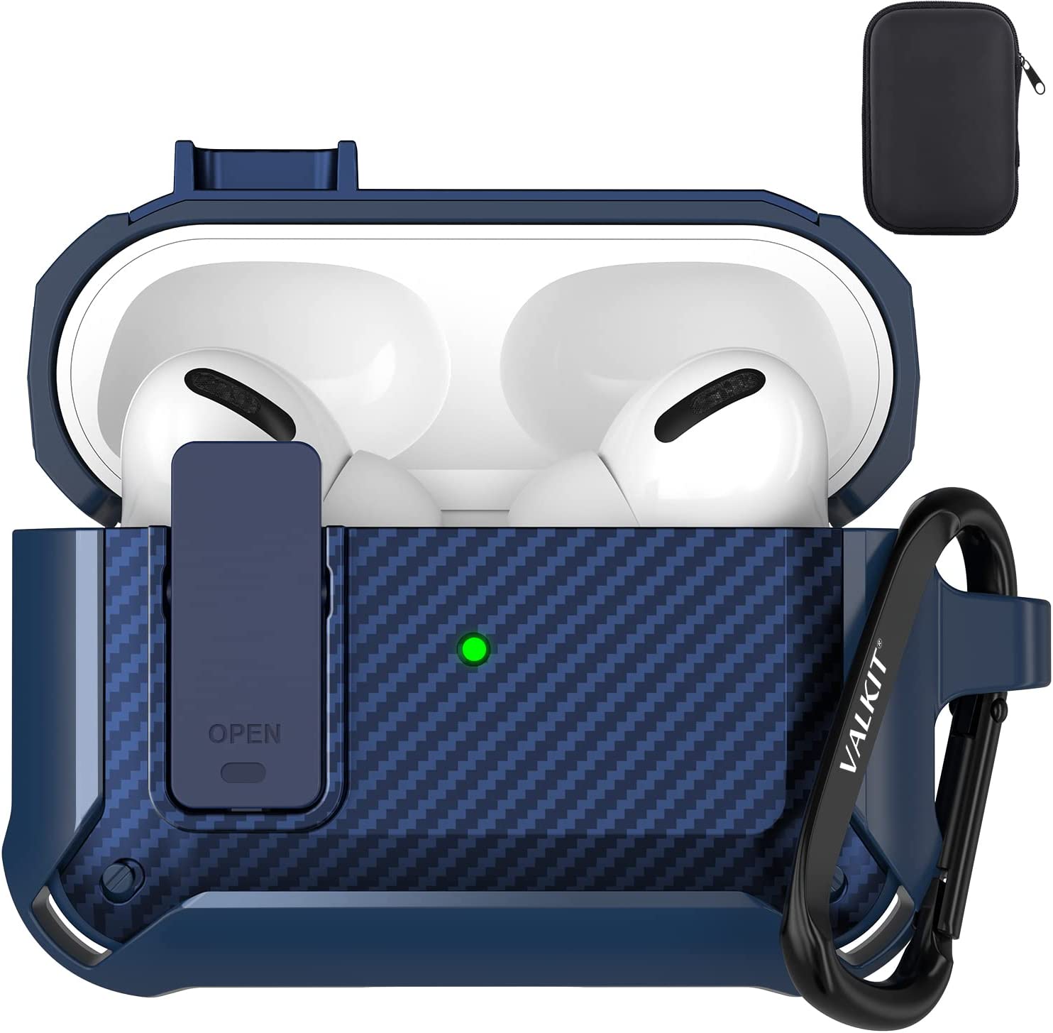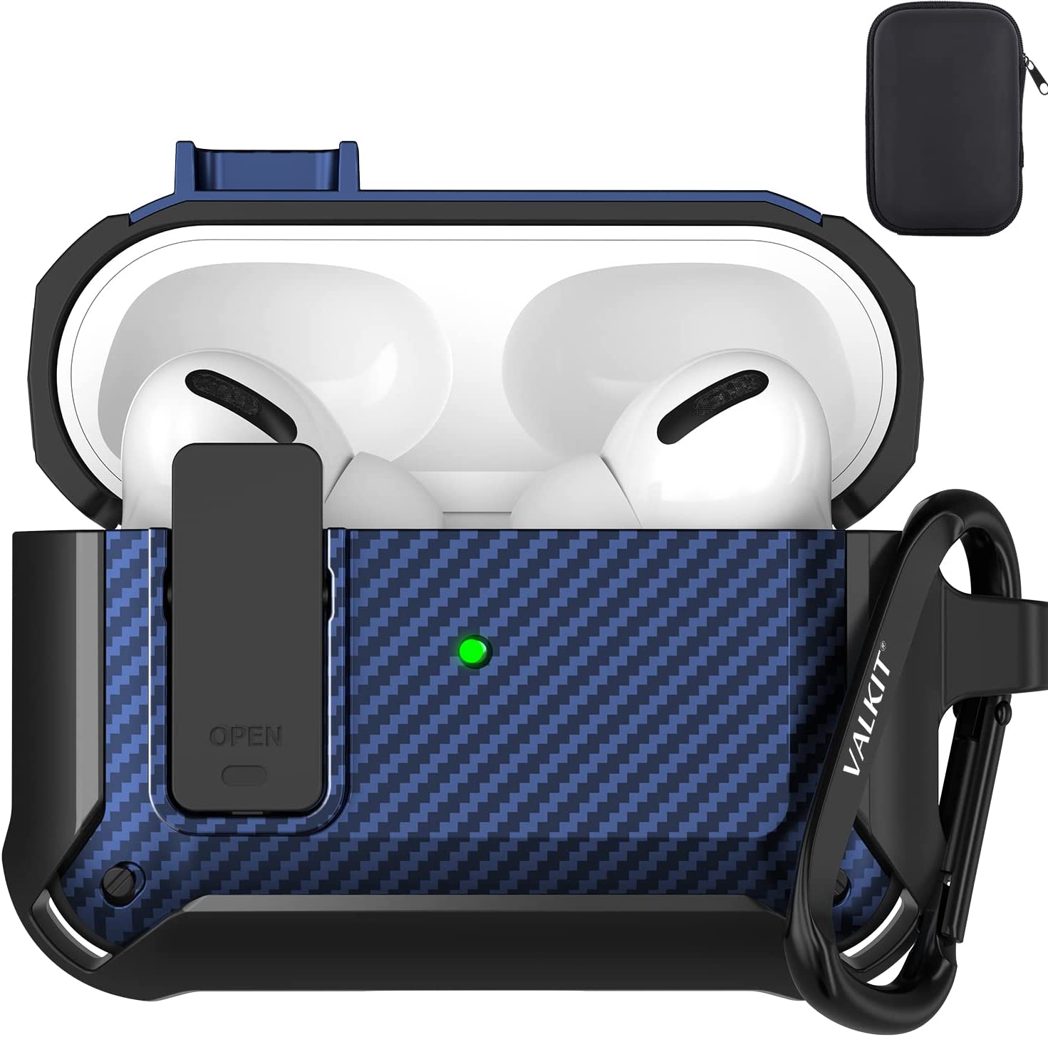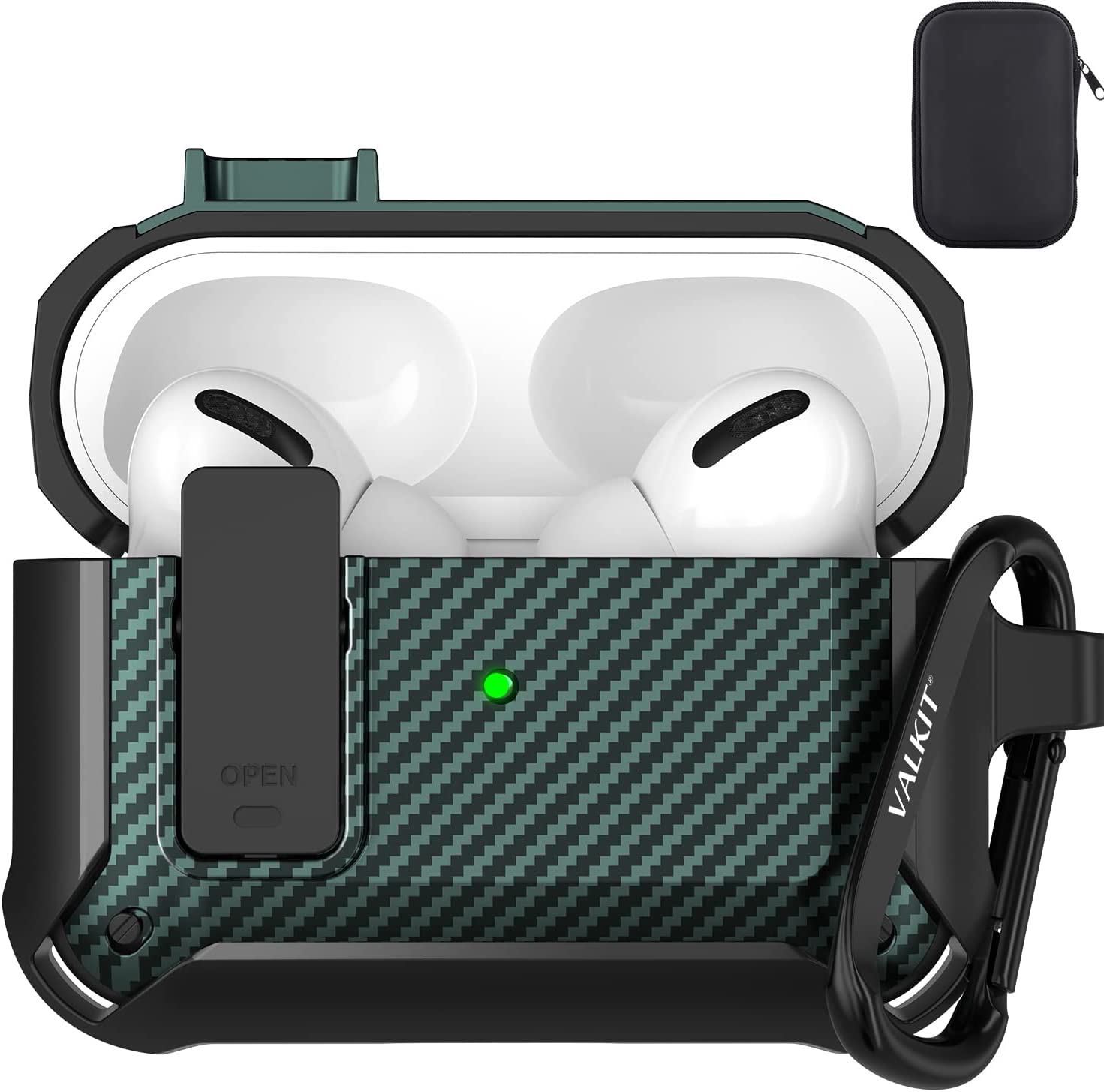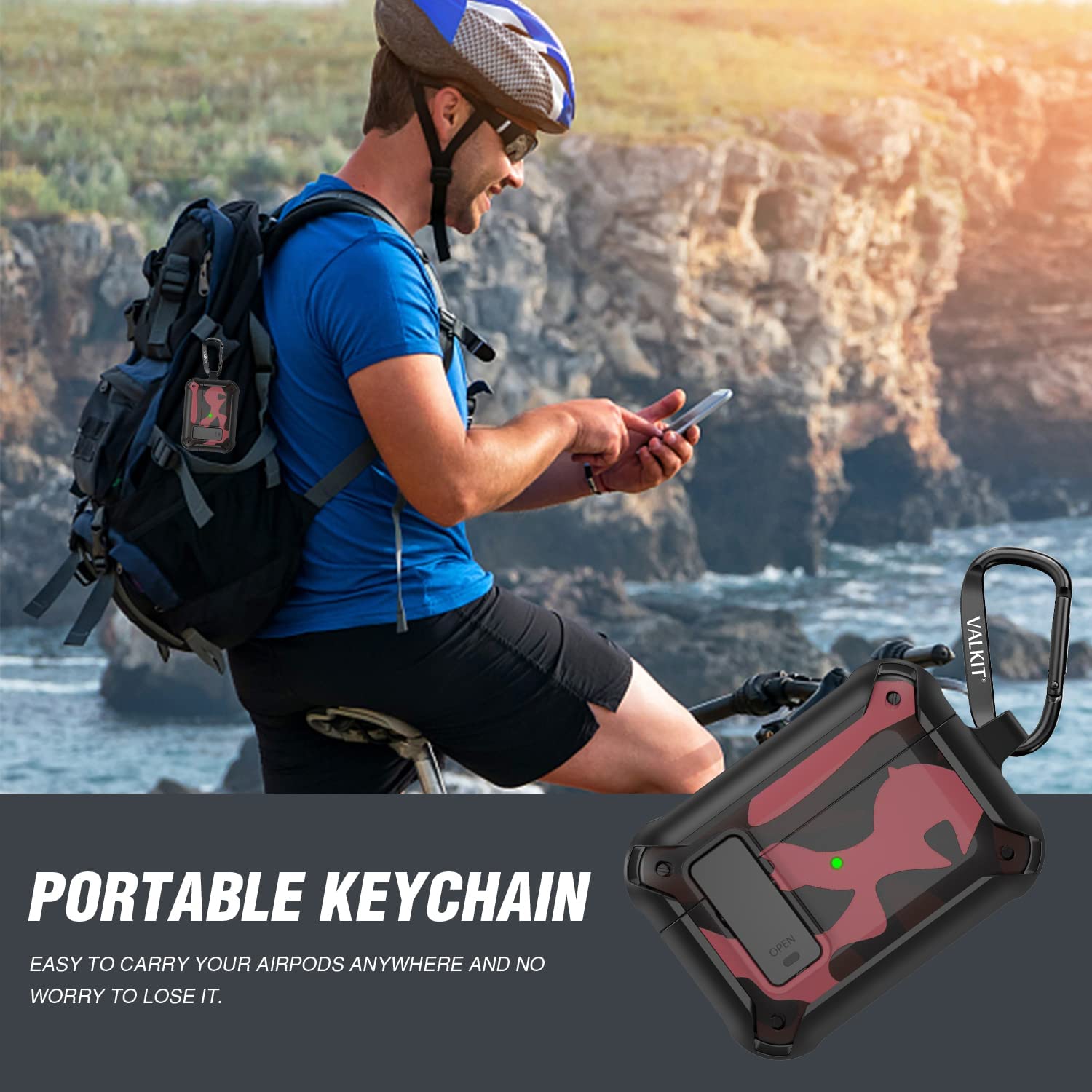 • [Full Protection] Valkit rugged Airpods pro case for men is made of military-grade resistant TPU material and with secure lock clip design, which provides full protection for your Airpods pro from drops, scratches and bumps.