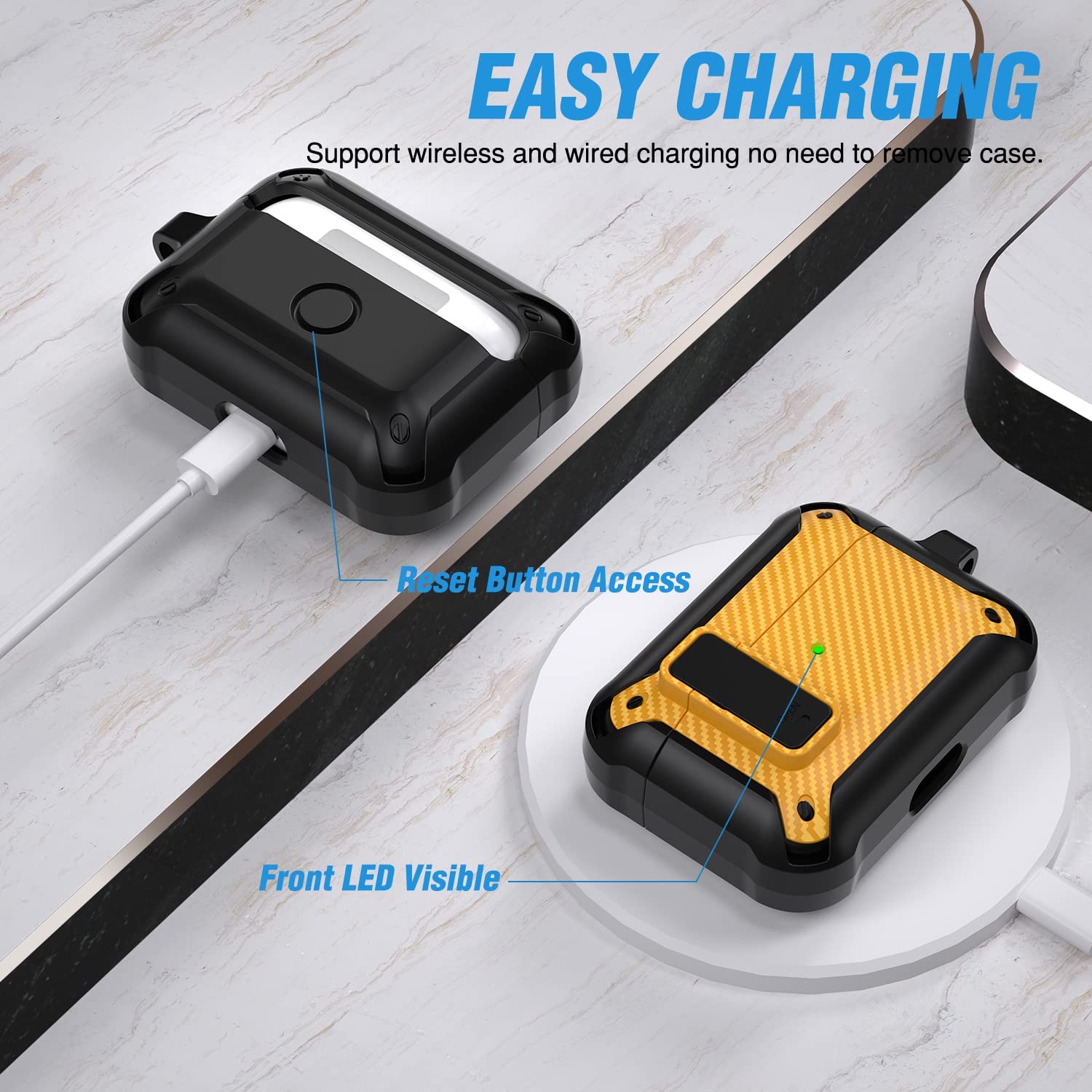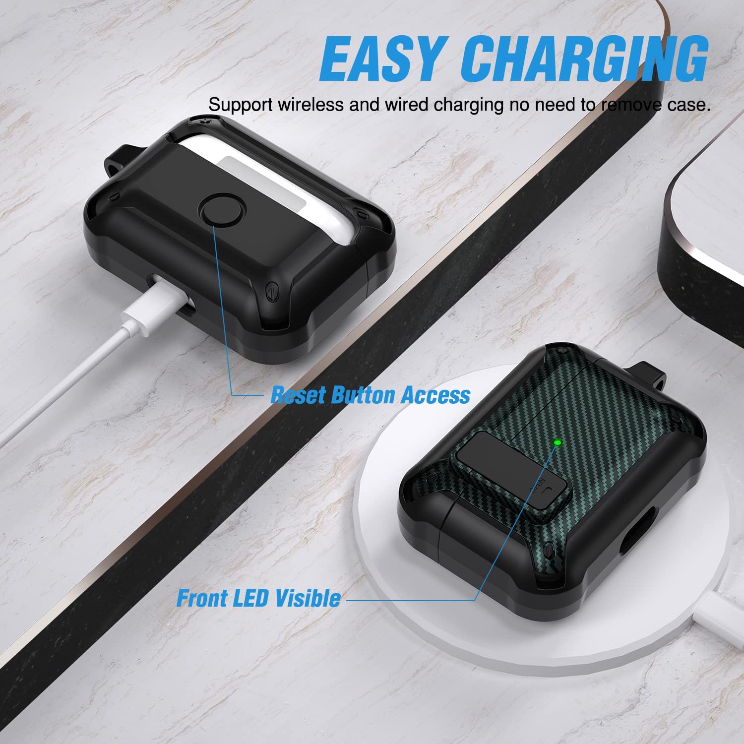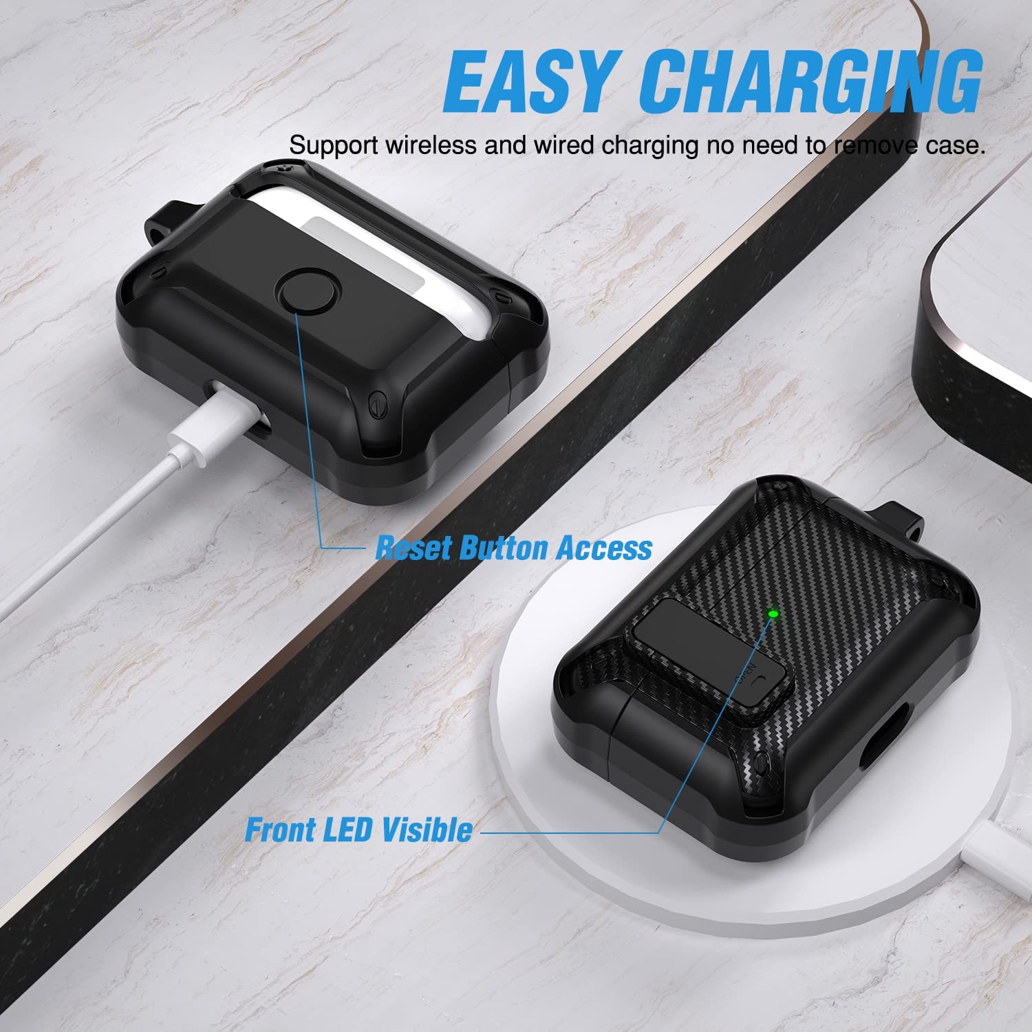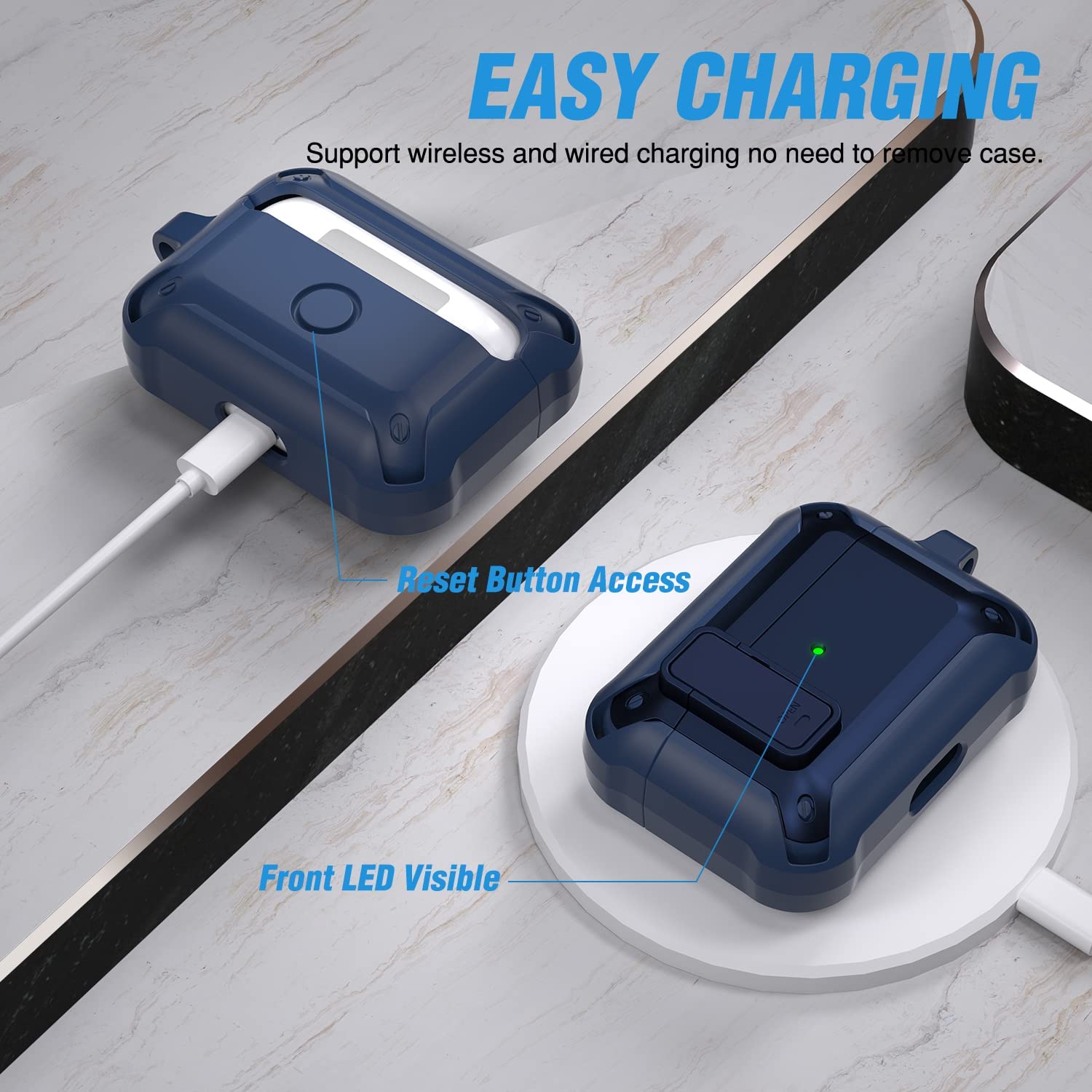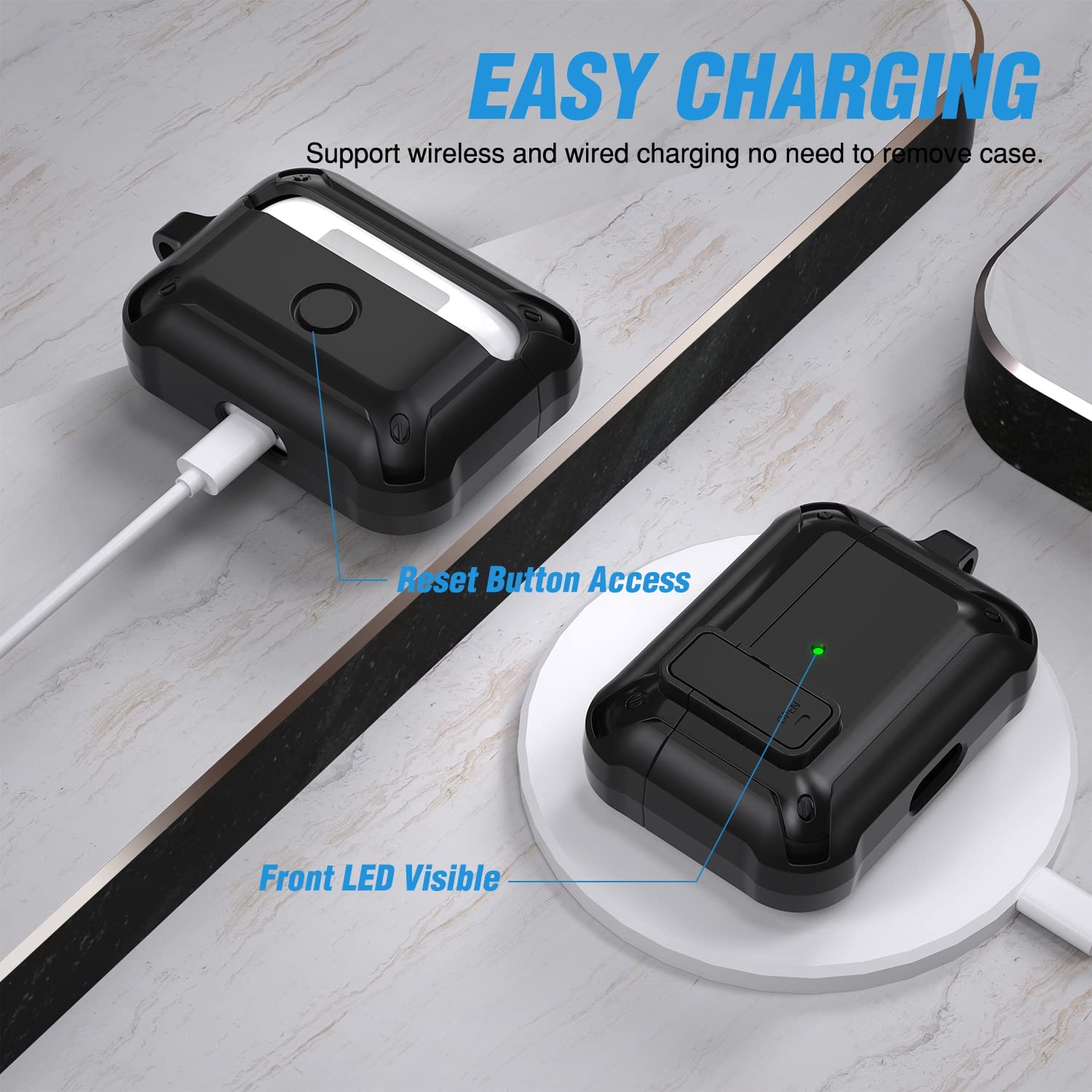 • [Easy Charging] The protective case cover supports wired and wireless charging without removing the AirPod pro case. Front LED for the charging case is visible.