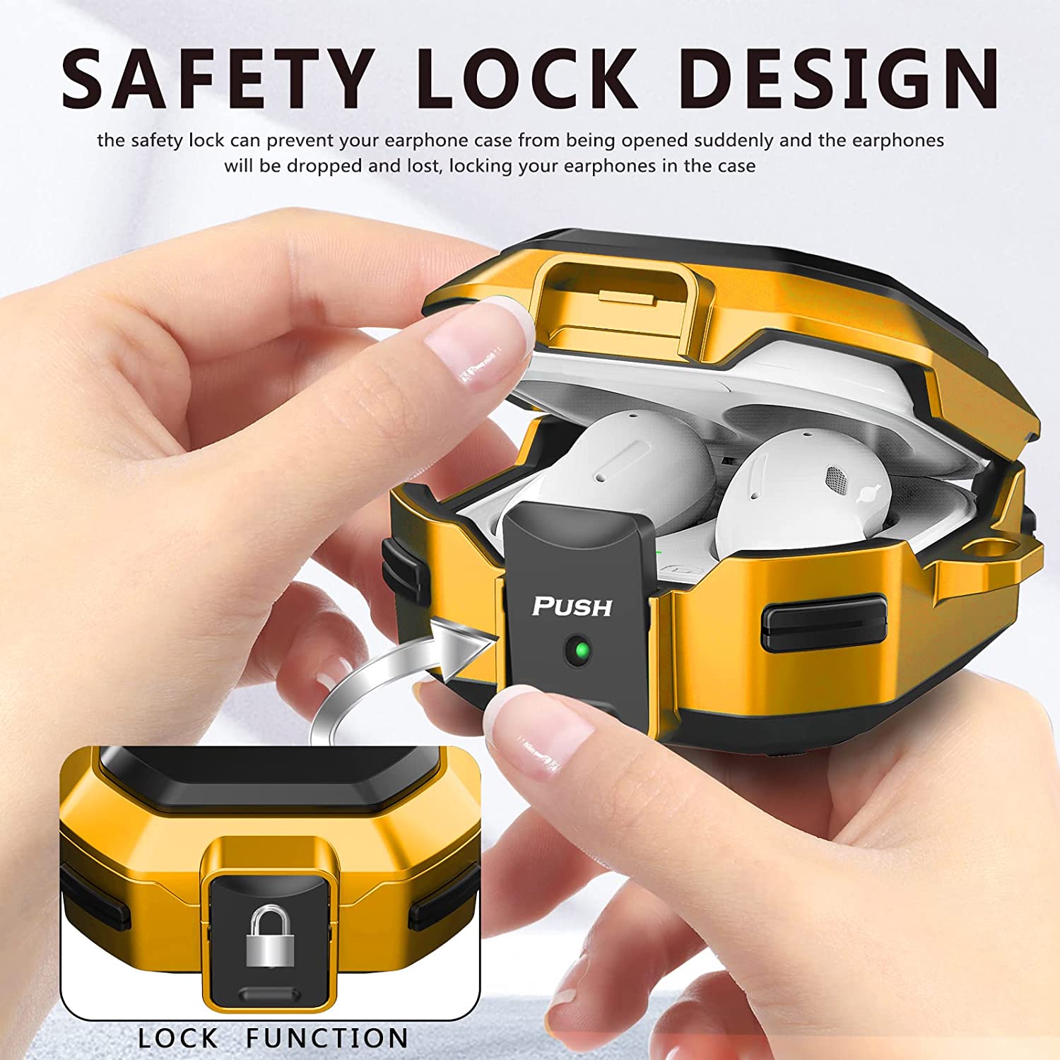 • ✔【Safety lock Design and Usage】: The earphone shell is composed of upper and lower shells, adopts a split structure, and has a safety lock function on the front. Press the front locking button to automatically open the top cover. Don't worry about the top cover automatically opening the earphones and dropping and losing your Galaxy Buds Live/Pro/2 when you're out.