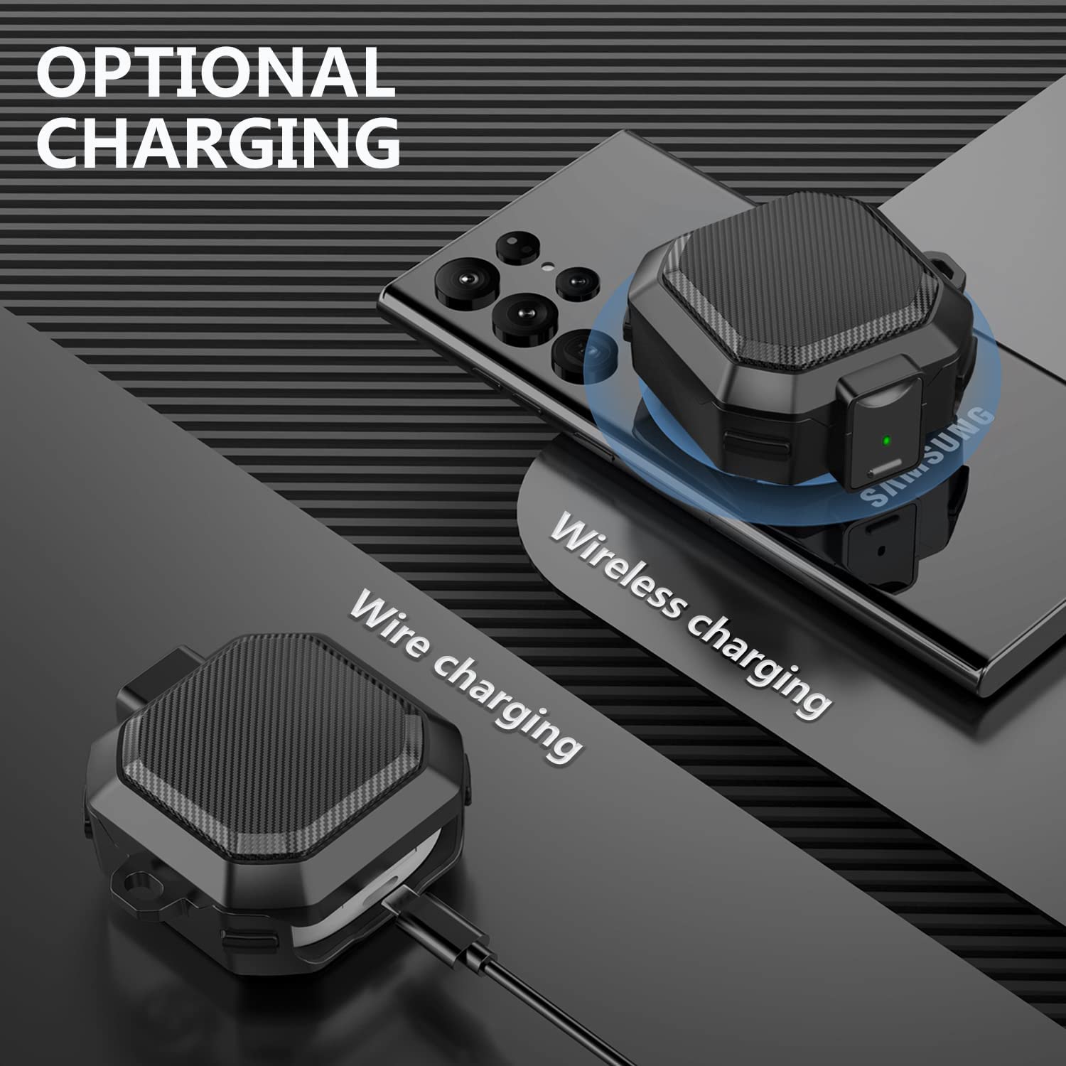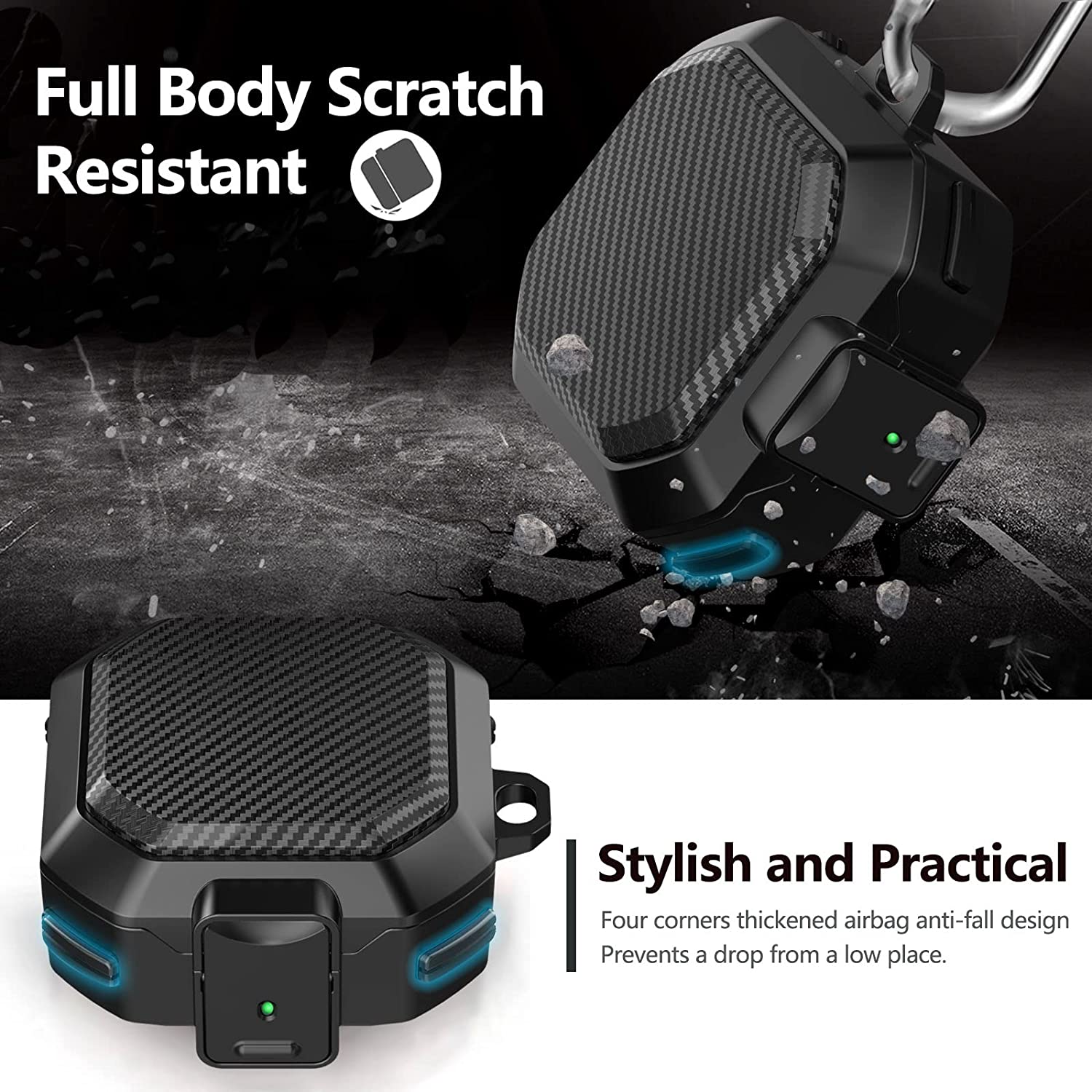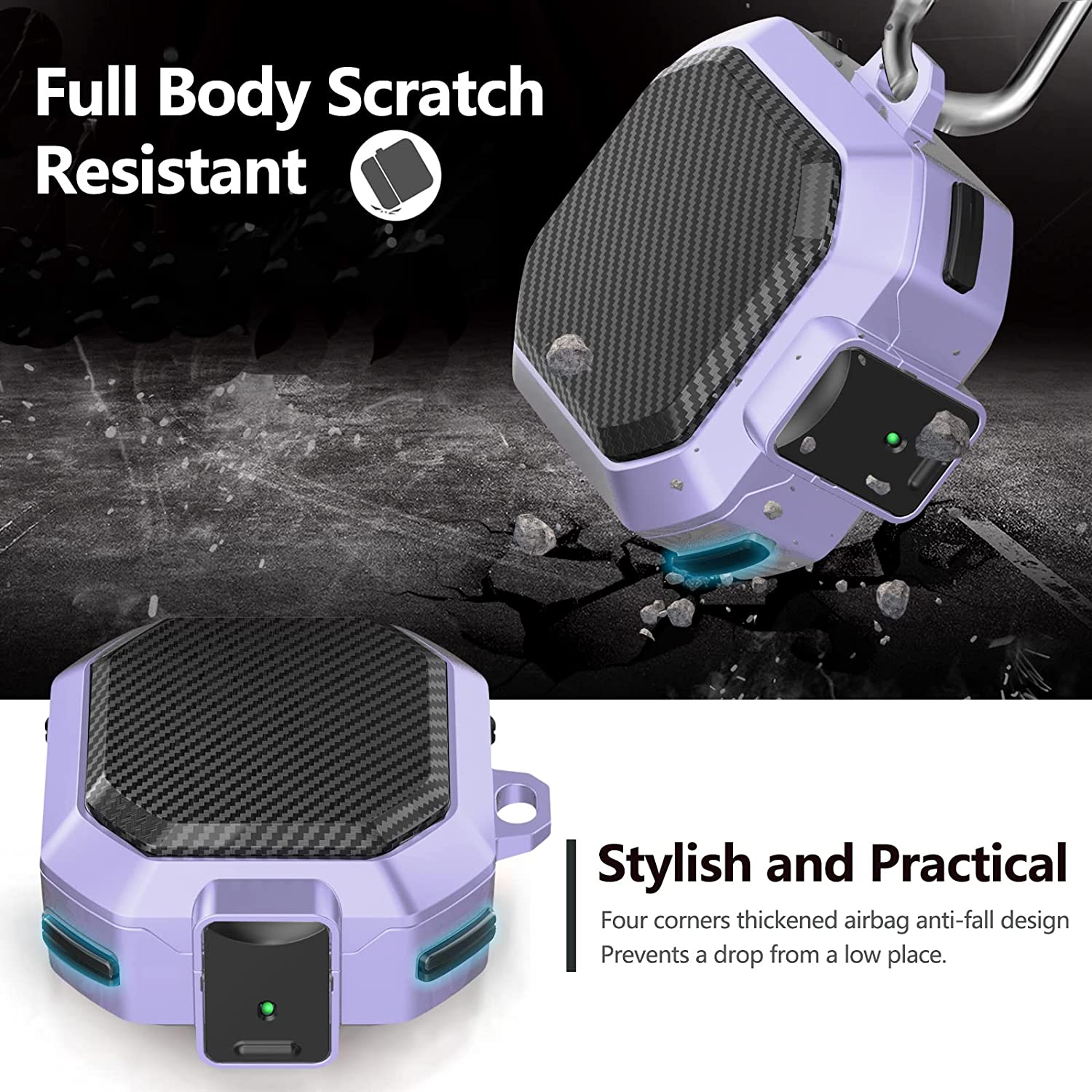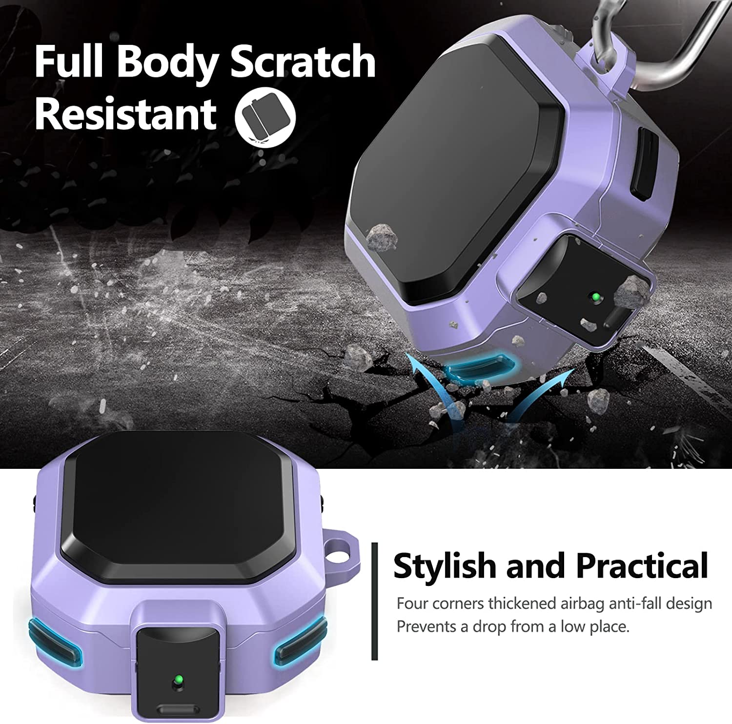 • ✔【Materials and Protection】: This cover is made of rugged military-grade hard PC material .The four corners are wrapped with a double-layer air cushion structure. Angle cushion technology protects your Galaxy Buds Live/Pro/2 charging case against bumps, drops and scratches etc.