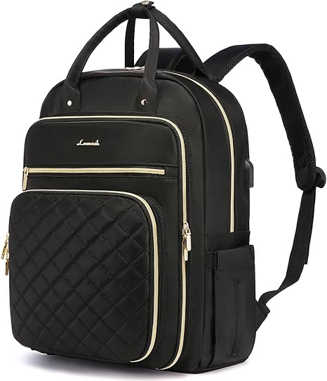 LOVEVOOK Laptop Backpack for Women, Water Resistant Travel Work Black Backpacks Purse Business Teacher Nurse Computer Bag with USB Charging Port, Fits 15.6" Laptop