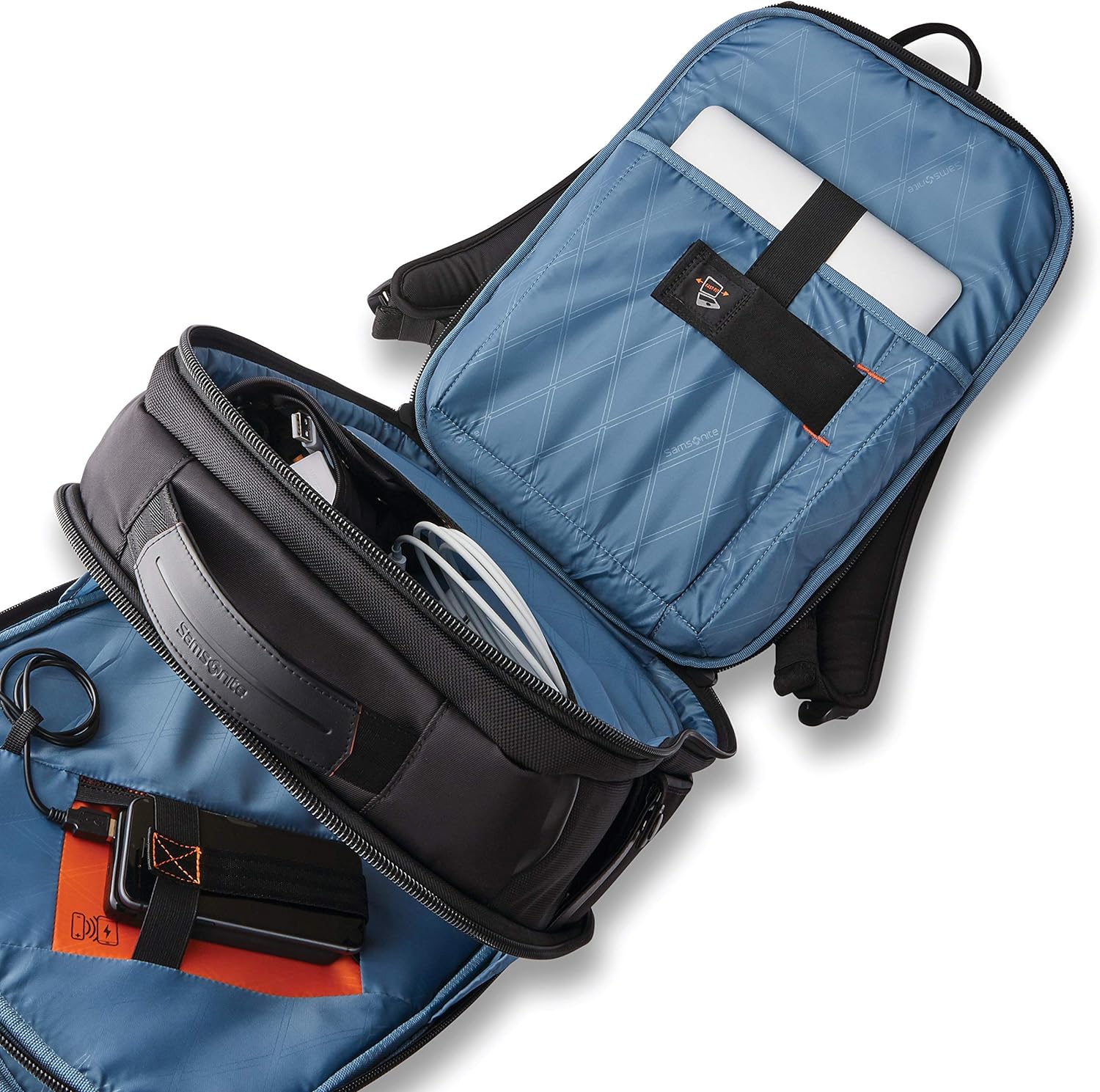 This versatile Samsonite pro slim backpack is loaded with features for ultimate organization. Featuring robust solutions for your business needs, with tech upgrades like wireless charging, RFID protection and USB ports for on-the-go-charging and padded tech compartments for your laptop and tablet, your essentials will stay organized, safe and protected.