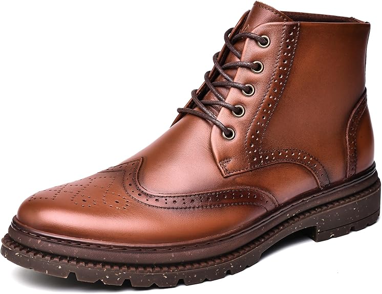 Arkbird Mens Wingtip Toe Chukka Boots - Mid-Top Casual Leather Oxford Dress Boot