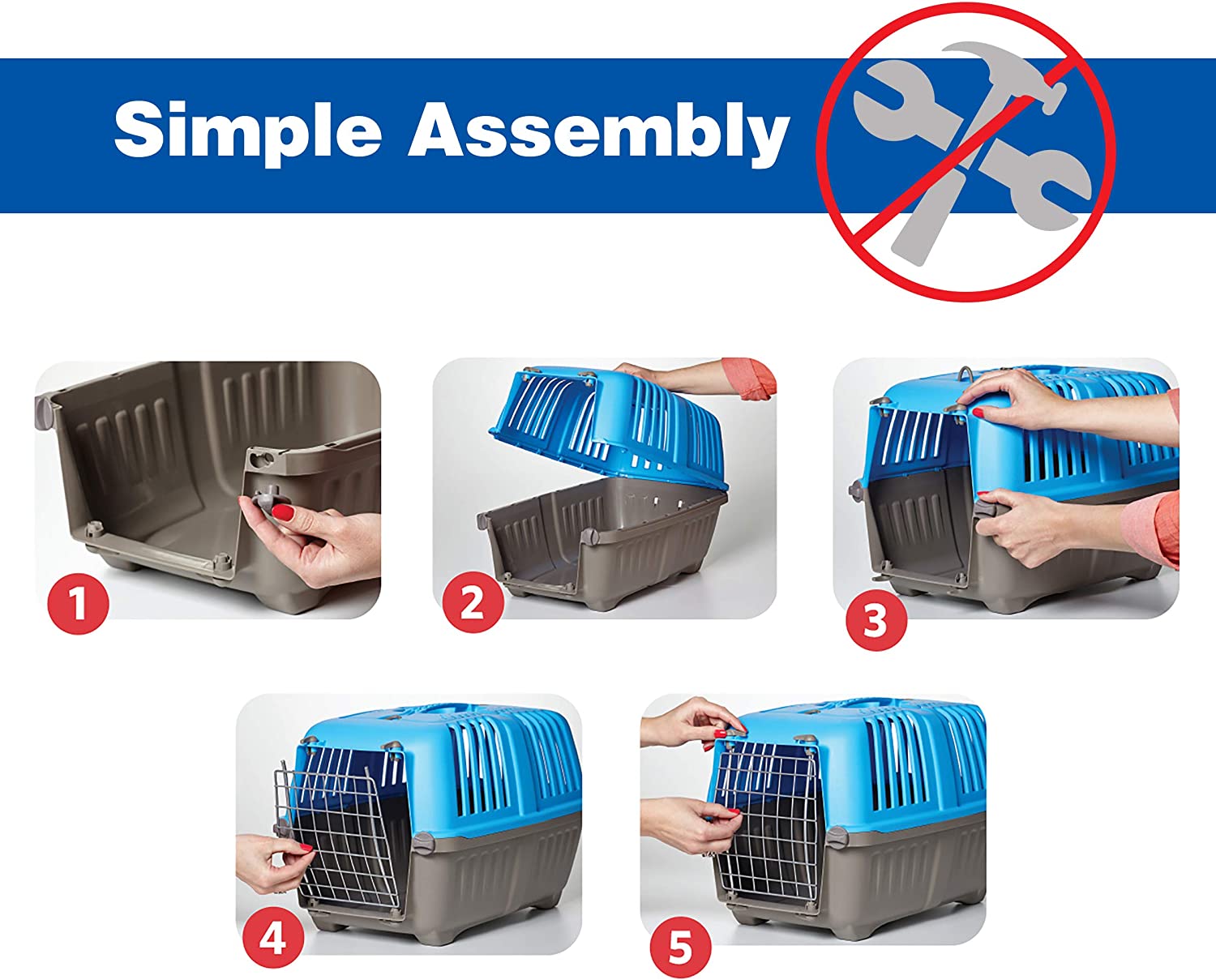 • Dog carrier made of durable, easy-to-clean plastic & includes built in carrying handle. Spree features a patented, quick & easy 5 step, no tools assembly. Our pet carrier assembles much easier than competitor carriers that use “nut & bolt” assembly